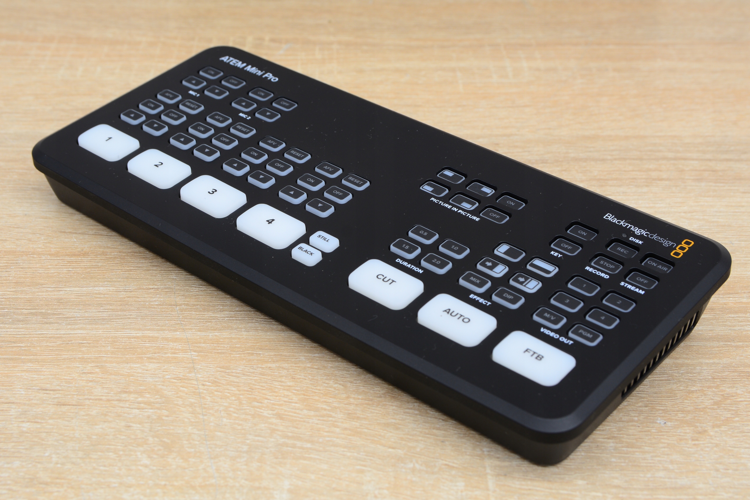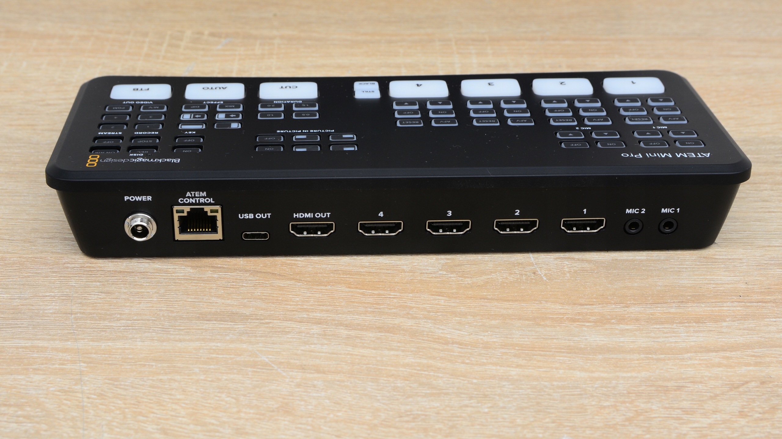 Blackmagic в ATEM Mini Pro зберегла все, що було чудово в ATEM Mini, але додала нові функції запису, потокового передавання та моніторингу. Найбільше оновлення полягає в тому, що обладнання для прямої трансляції прямо в пристрій вбудовано, що дозволяє здійснювати пряму трансляцію через Ethernet на YouTube Live, Facebook і Twitch.