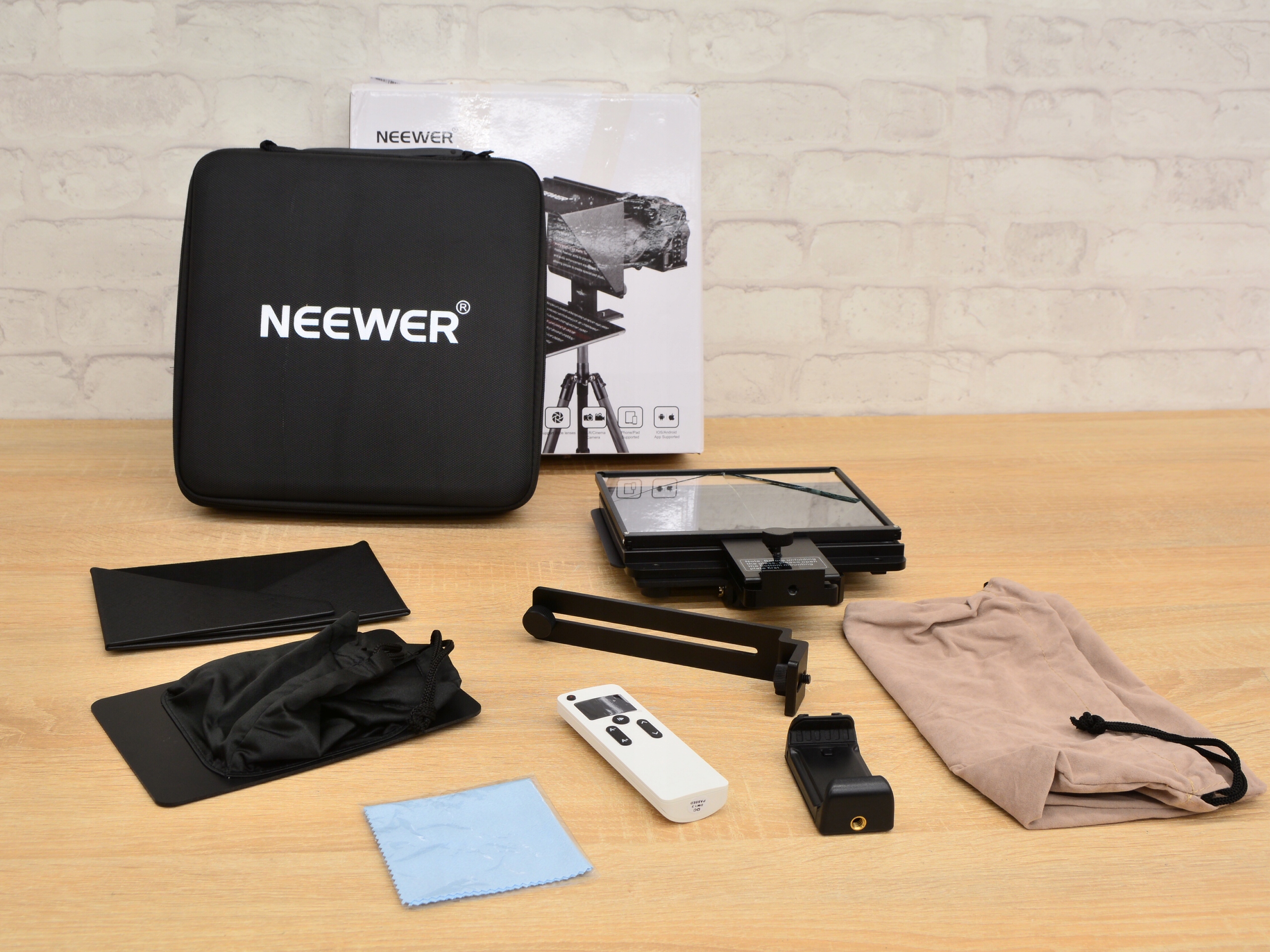 Пошкоджений телесуфлер NEEWER X1 Pro Teleprompter для фотозйомки на камеру або смартфон, 9 дюймів, повністю металевий, дистанційне керування через NEEWER Teleprompter App Bluetooth з'єднання, Note Сумісний з iPhone h1>