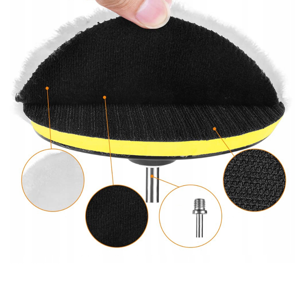 Набір інструментів полірування постачається з 1-частинним адаптером буріння та 1-частинною липучкою. Структура застібки на липучках допомагає міцно прикріплювати полірувальний щит до гачка. Його можна швидко встановити або видалити.