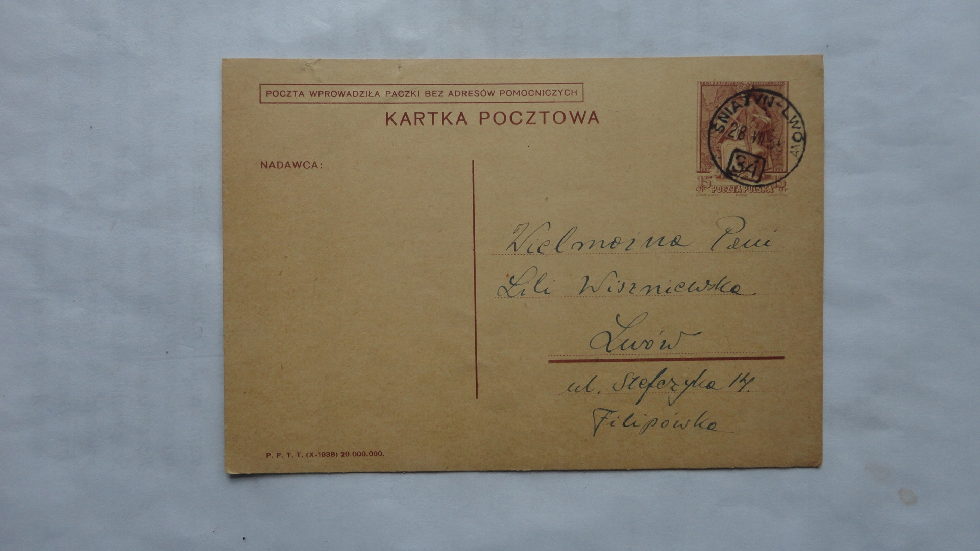ПОШТА ШВИДКОЇ ДОПОМОГИ СНЯТИН ЛЬВІВСЬКА НО. 34 1939 р