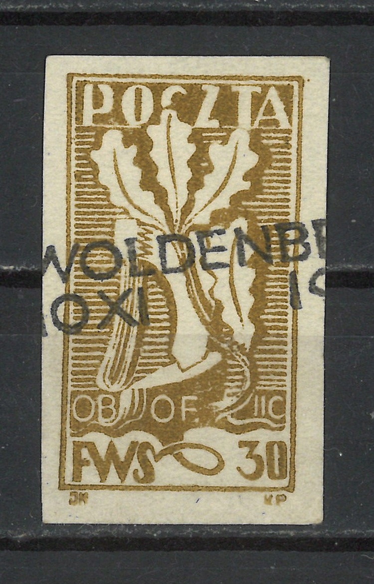 Поштова марка табору Вольденберг. Табір ІІ С. 1944 р. Невеликий слід клею.