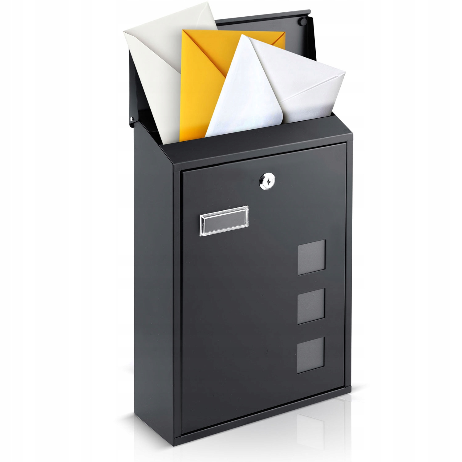Матеріал: оцинкована сталь з порошковим покриттям Колір: чорний Тип входу: верхній, з м'якими дверима Оглядове вікно + місце для адреси У комплекті: 2 ключа, монтажний набір Розміри: 39,5 x 25,5 x 12 см