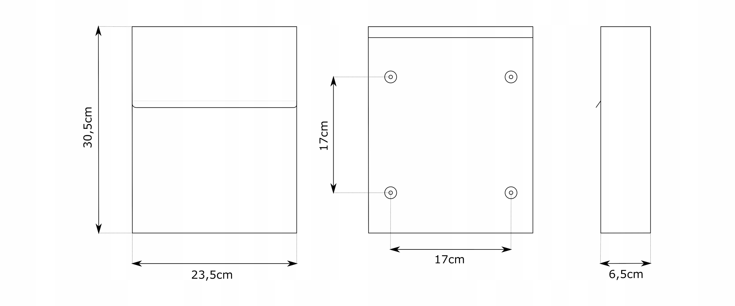 - Відстань між отворами для кріплення: 17 см по вертикалі, 17 см по горизонталі