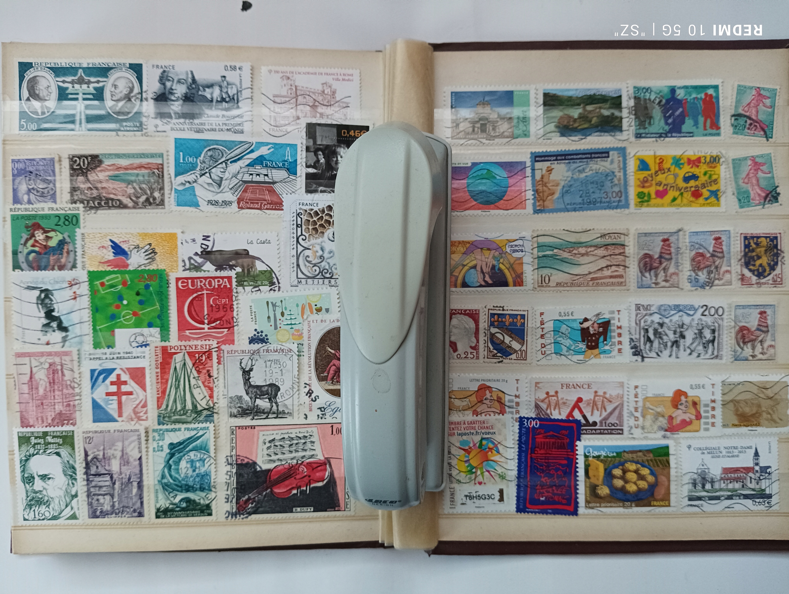 Сшивач розміром 165 х 210 мм містить 8 аркушів, заповнених марками.
