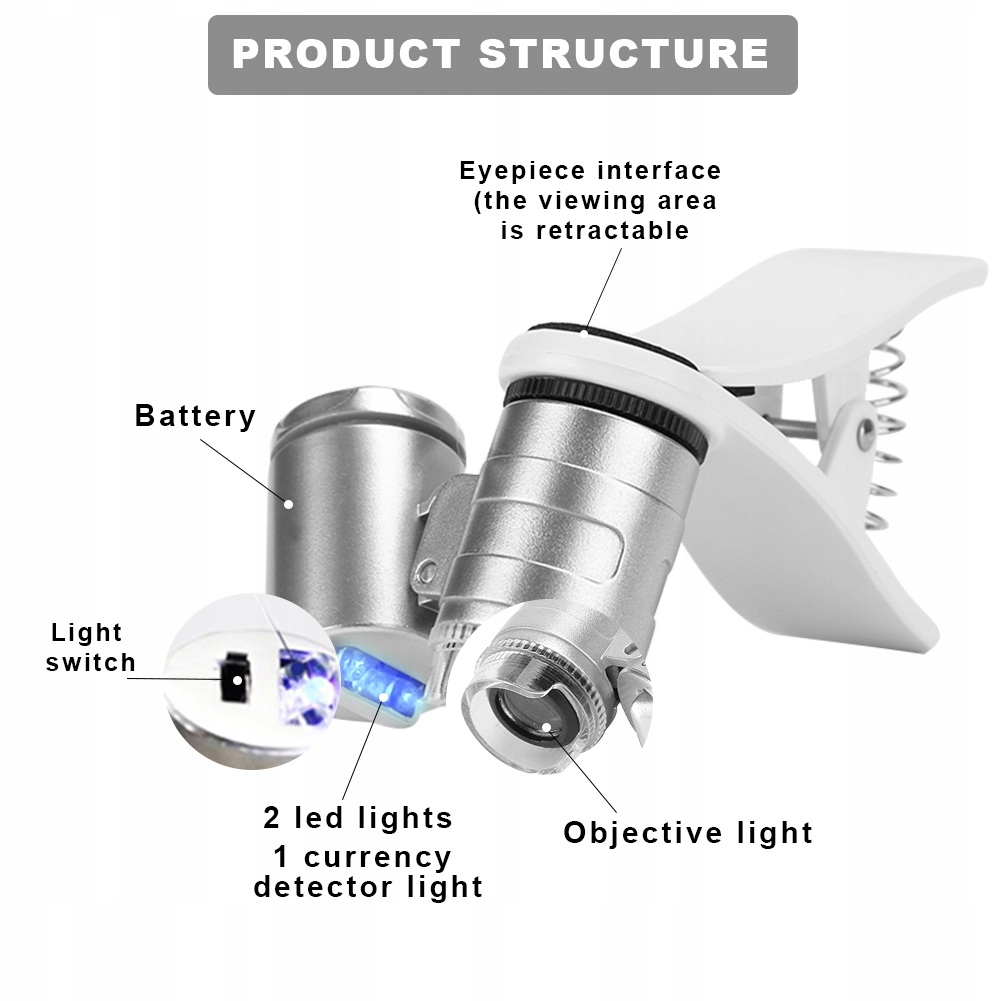 Посібник, портативний світлодіодний журнал 60x з лупологом до