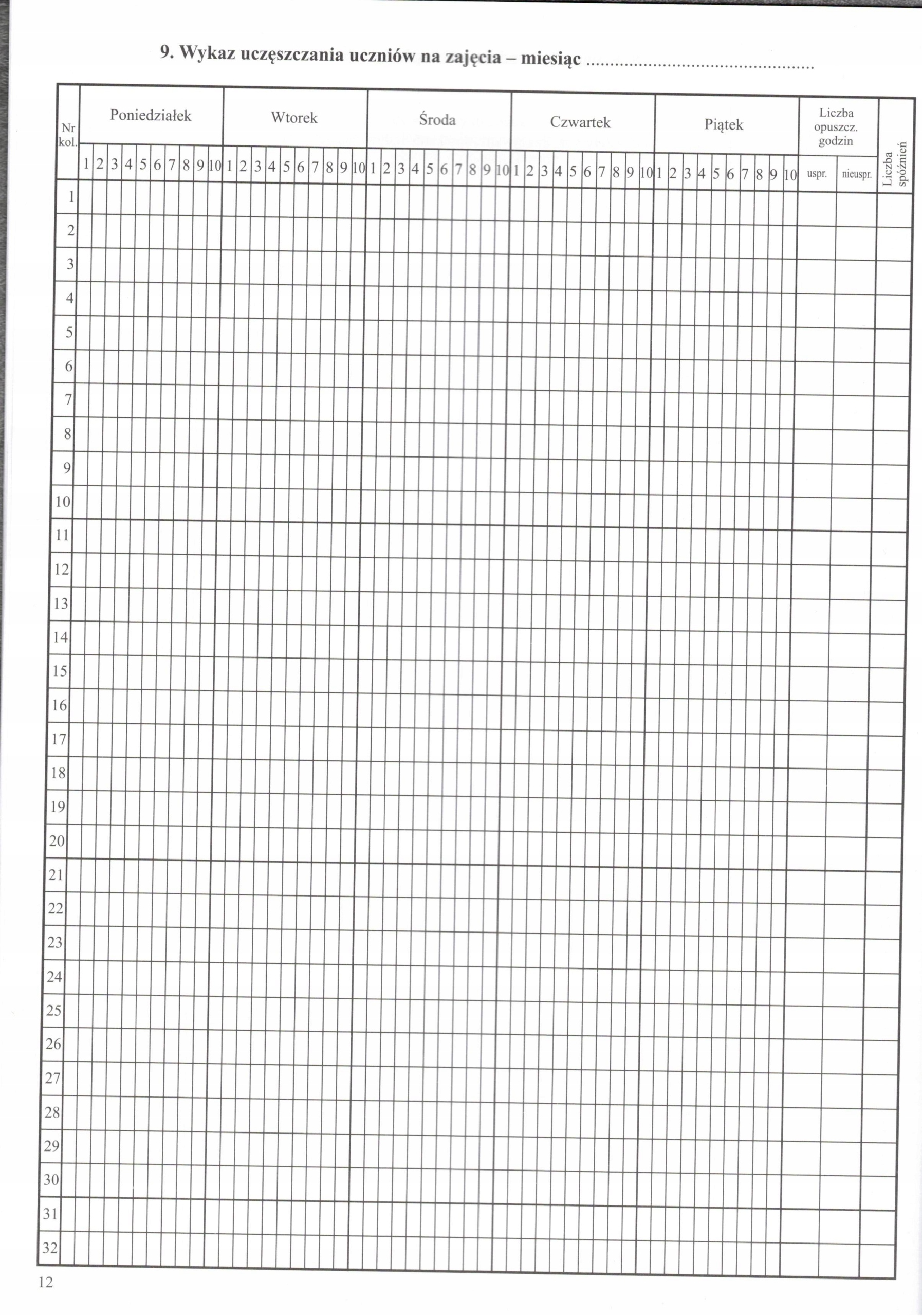 10. Виконання тижневого плану навчання – місяць .....