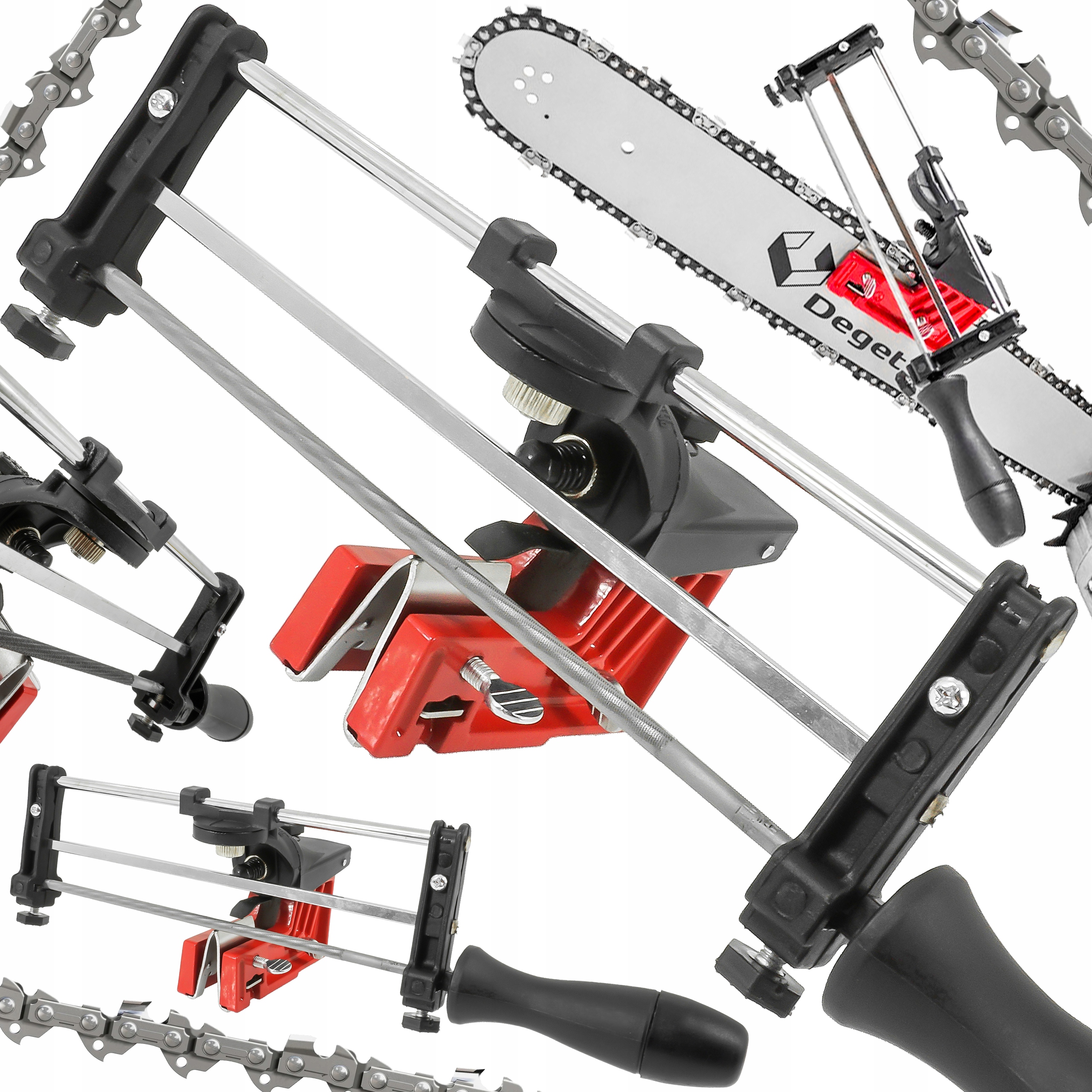 Рамковий верстат для заточування ланцюгів VERKE - це надійний пристрій, призначений для заточування ланцюгів бензинових і електричних пил, встановлених безпосередньо на напрямну пилки. Дозволяє легко та ефективно заточувати ланцюги. Все, що вам потрібно зробити, це встановити на точило напилок, який підходить для вашого ланцюга, а потім покласти його на напрямну пилки, щоб по черзі заточити кожен ріжучий зуб, рухаючи ручку точила вперед і назад.