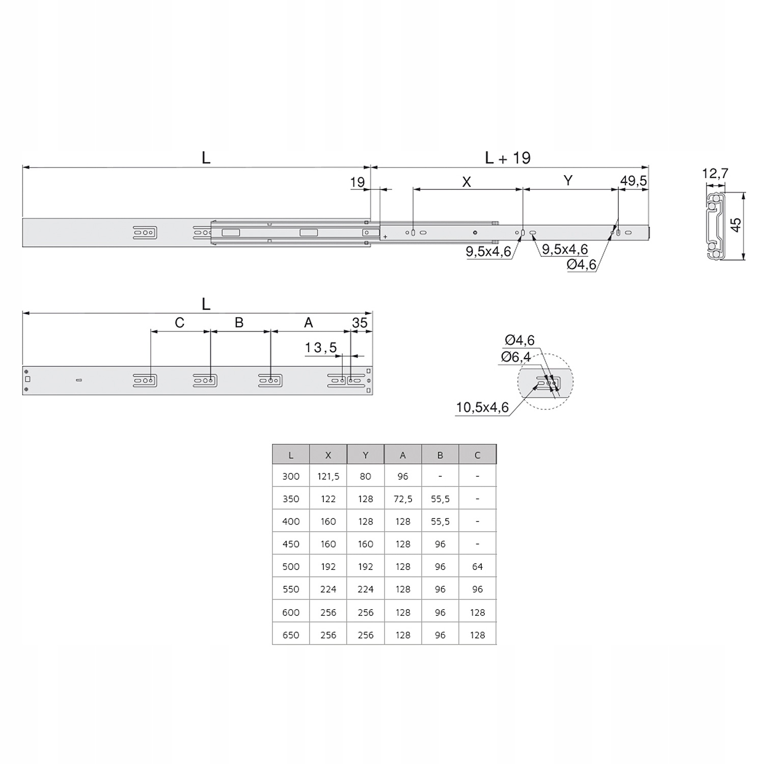 Характеристики продукту: Повне висування, Безшумне закривання, Можливість розбирання направляючих частин, Телескопічна направляюча структура