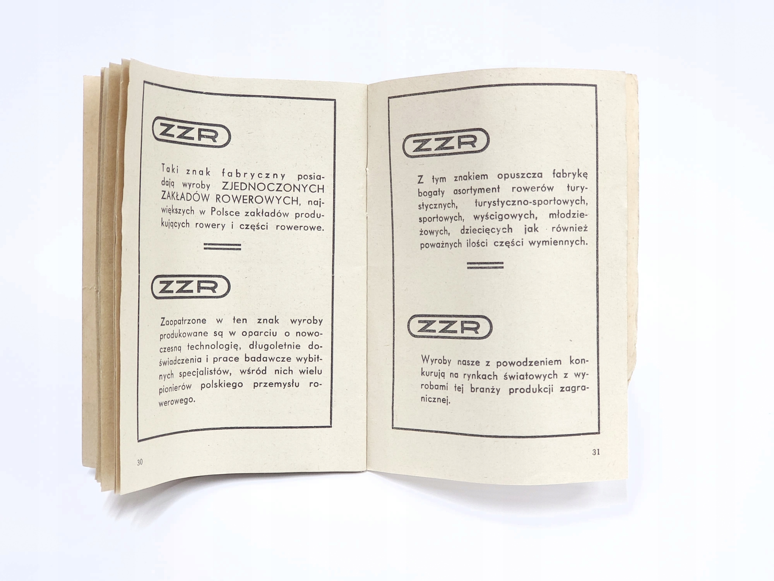 Інструкції з велосипедів ZZR з 1963 року. Недолік у вигляді слабкого заводського шиття, що робить внутрішні кілька сторінок вільними.
