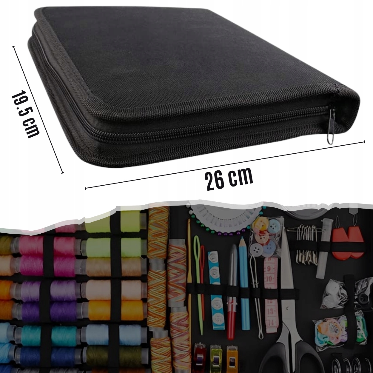 Швейний інструмент в елегантному кейсі. Ця річ ідеально підходить для швачок і людей, які займаються шиттям щодня. Він містить усі основні речі, необхідні для пошиття чи ремонту одягу. Корпус складається з 226 елементів, серед яких: нитки, рулетка, ножиці, голки або наперсток. З ним ви можете пришити ґудзики до різного одягу тощо.