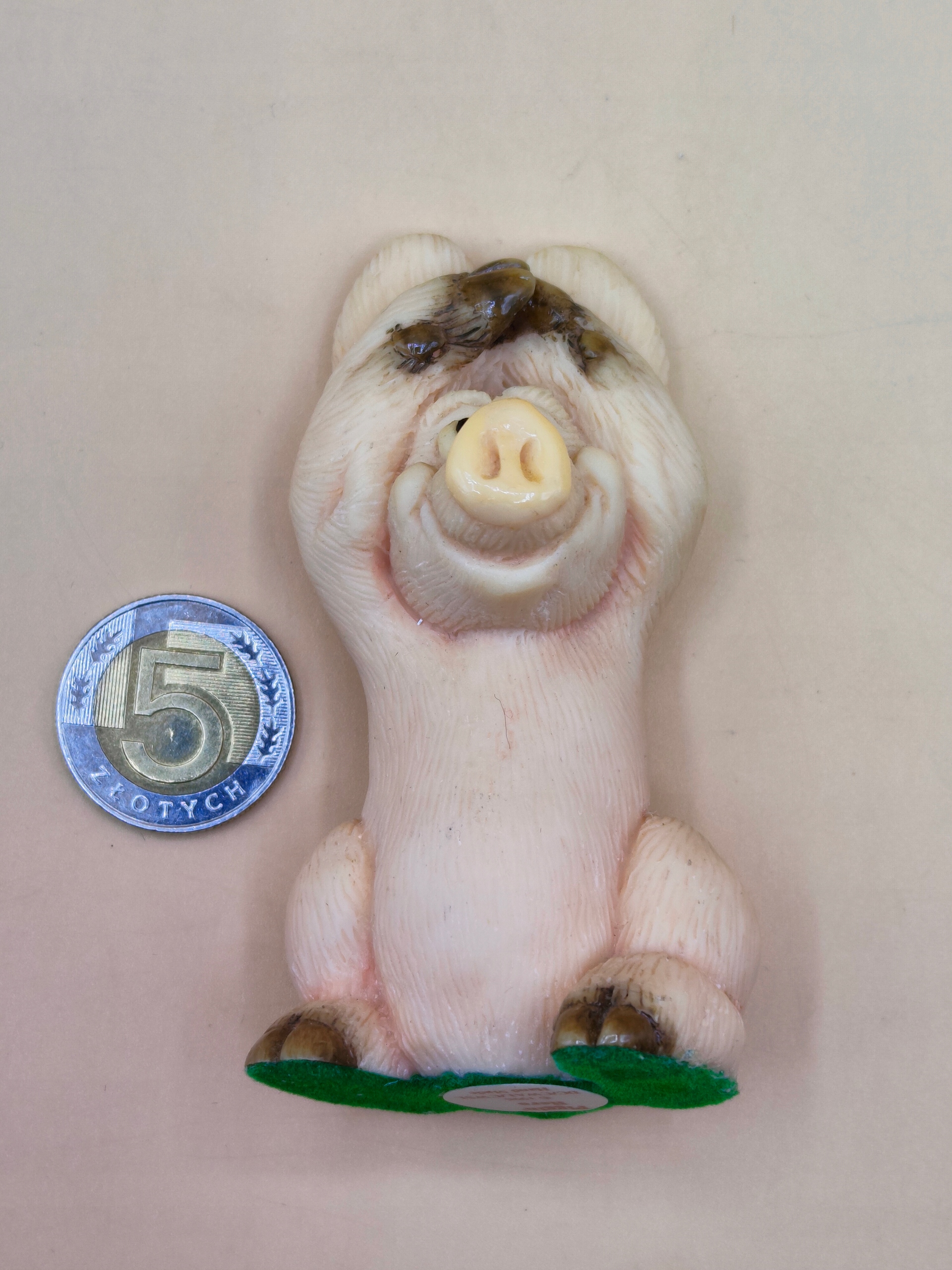 статуетка, виготовлена з якогось смоляного матеріалу. Висота 8,5 см, важить близько 85 г. Старовинний предмет, вік, як ви бачите, статуетка, приклеєна зеленим кольором із флоком/матеріалом, щоб не малювати землю. Live виглядає так само красиво, як на знімках. Колекціонер. Я рекомендую