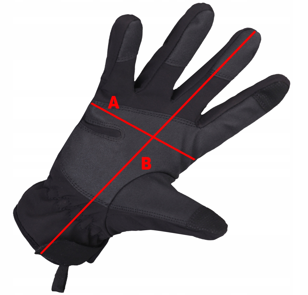 - B: Ширина в середині долоні: 10 см