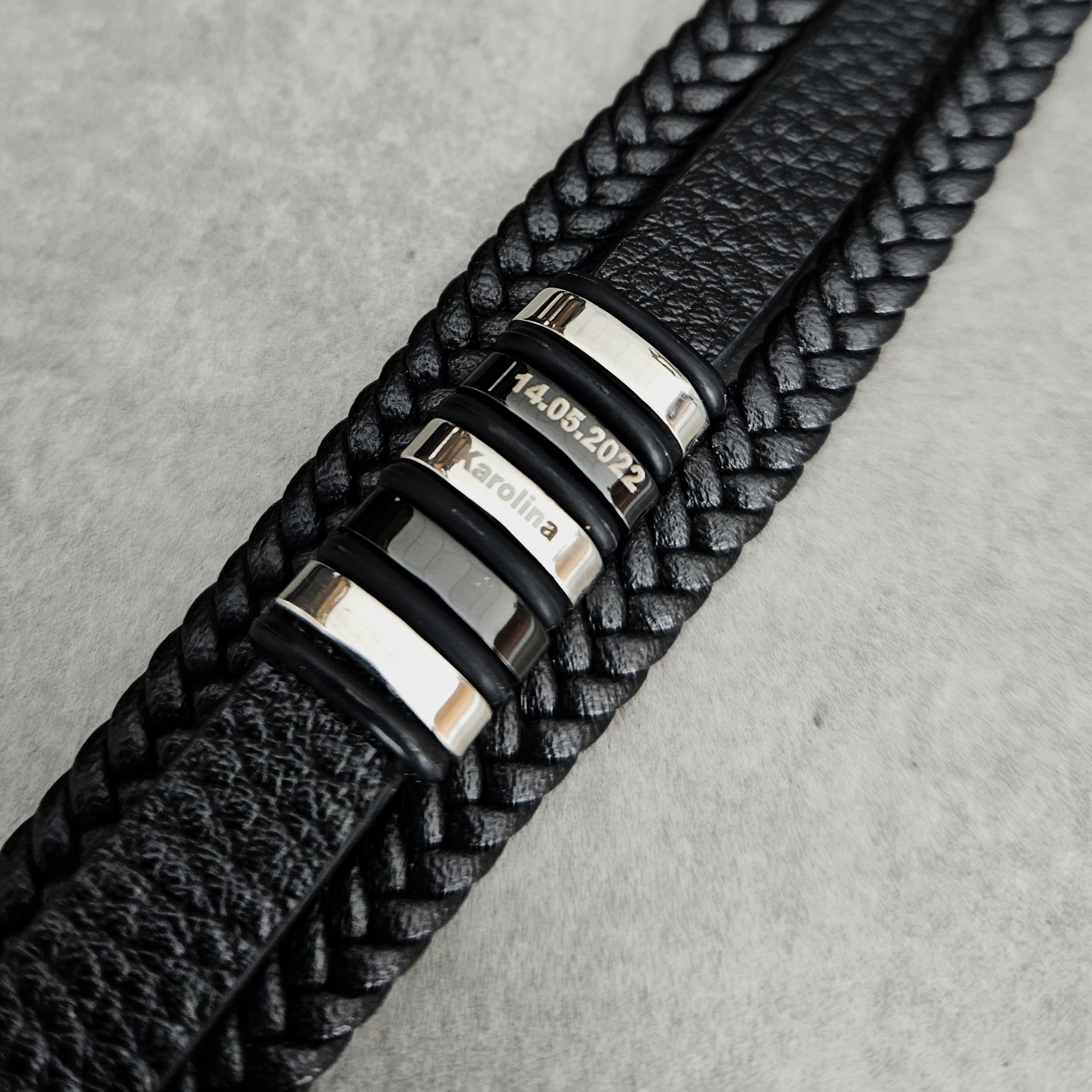 Можливе гравіювання пластин на передній частині браслетів (див. фото нижче) - кожна пластина означає придбання 1 послуги лазерного гравіювання (це може бути текст + символ)