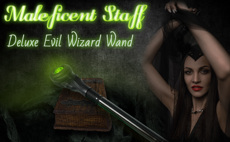 Посох Малефісенти. Злий чарівник. Відьомська паличка із зеленим світлодіодом