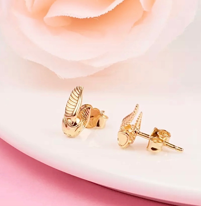 Створіть унікальний образ із цими чарівними сережками Гаррі Поттер, Золотий снитч. . Ці чарівні позолочені сережки-гвоздики, натхненні найменшим м’ячиком у відомій грі квідич, який гравці повинні знайти та зловити, щоб виграти, прикрашені крильцями, що обертаються, і ребристими деталями.