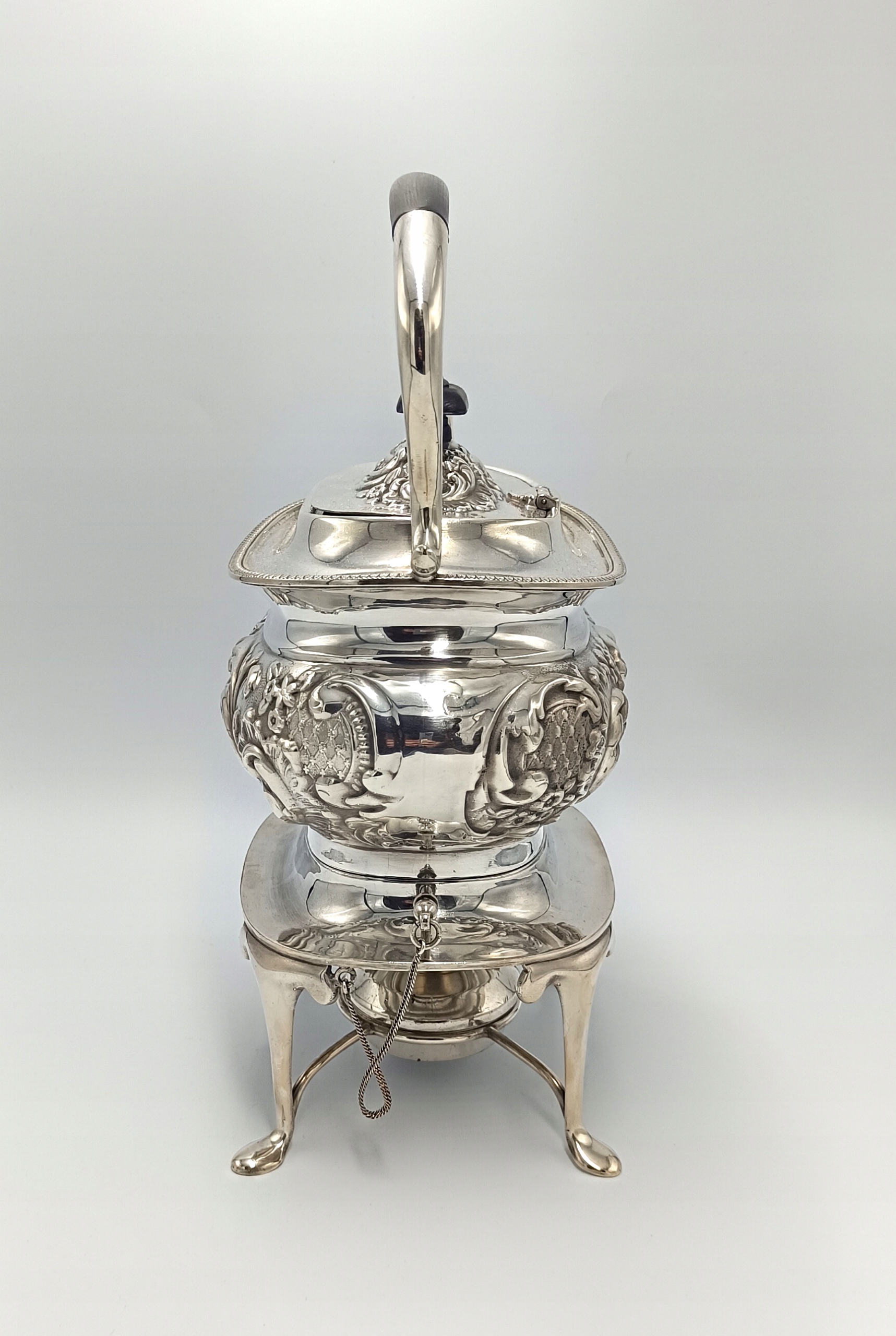 Представляємо англійський, посріблений чайник на нагрівачі De Montfort Plate.