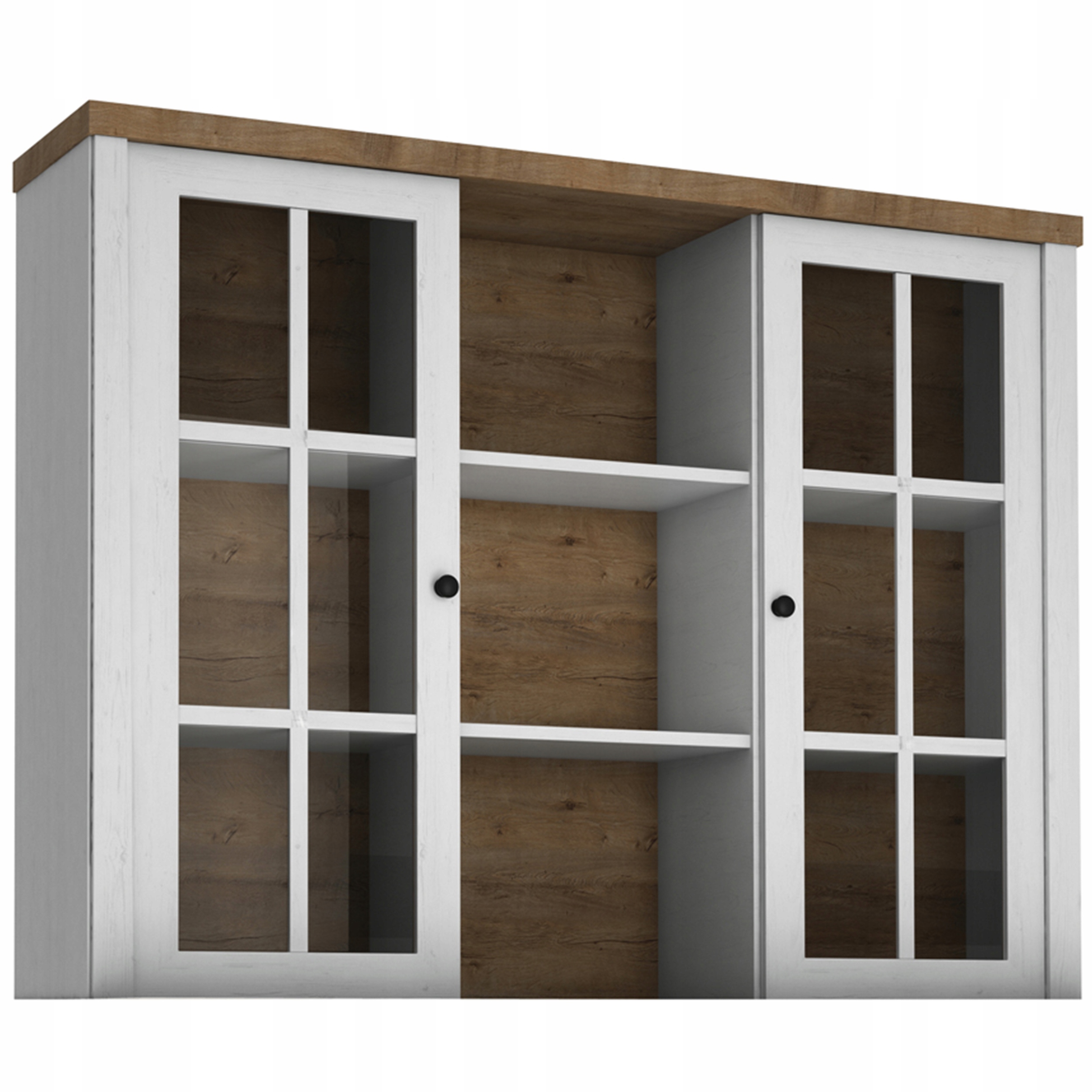 Красивий, провансал назад з колекції Lemas - це пропозиція для людей, які цінують меблі в класичному та елегантному стилі. Білий колір та дерев’яний ламінат та стилізовані ручки підкреслюють провансальний стиль та унікальний дизайн. великі, місткі полиці і засклені двері дозволять вам відображати всі декоративні предмети. Унікальний персонаж розширення Lemas ідеально відповідає будь -якій класичній вітальні, їдальні чи вітальні.