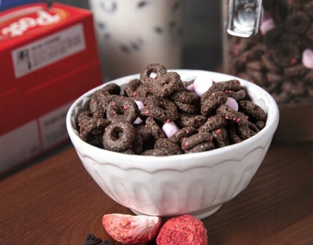 Злакові сніданки зі смаком шоколадного печива Орео з полуницею та зефіром.