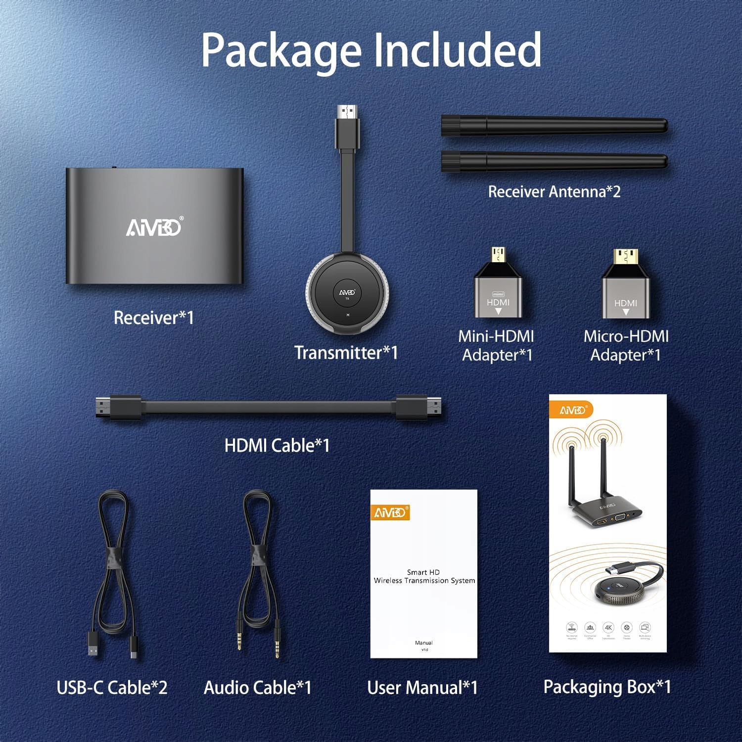 AIMIBO Q3-TX G48-RX характеризується простим у користуванні штекерам та відтворенням-просто підключіть передавач до джерела HDMI, а приймач до телевізора або проектора, і система автоматично синхронізується за кілька секунд, усуваючи необхідність встановлення додатків або драйверів. Побудований -в двоповерховому Wi -Fi (2,4/5 ГГц) гарантує плавне та безпроблемне відтворення мультимедіа, включаючи популярні програми, такі як Netflix, Disney+, Hulu та багато інших.