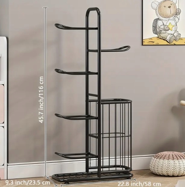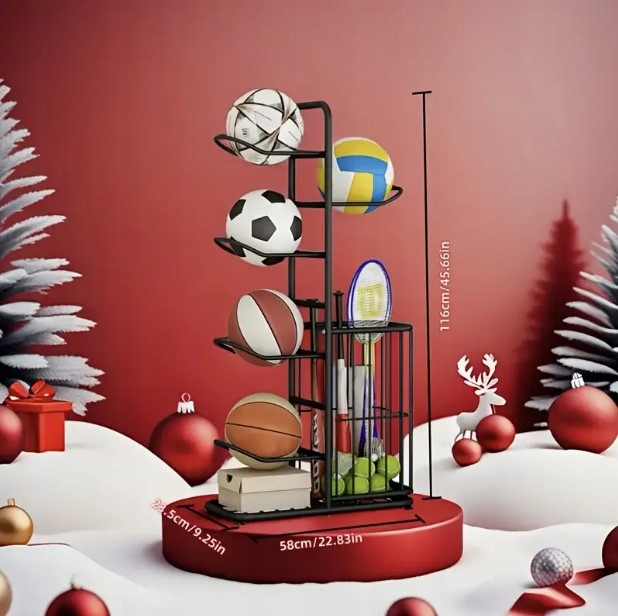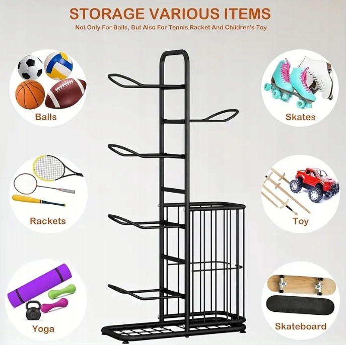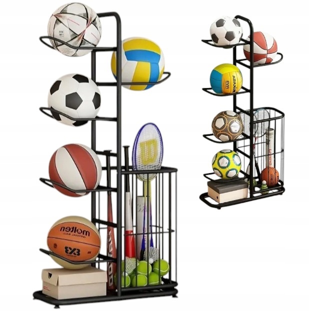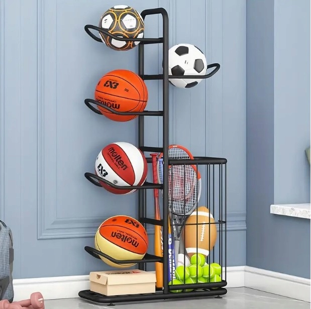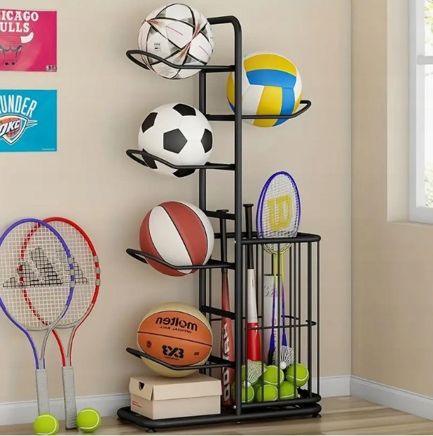 металеві підставки з стабільною базою допомагають організувати спортивні аксесуари, не тільки різні типи кульок, але й палітри, полюси та різні спортивні аксесуари.