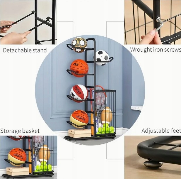 металеві стенд Стабільна база допомагає організувати спортивні аксесуари, не тільки різні типи кульок, але й палітри, полюси та різні види спортивних аксесуарів.