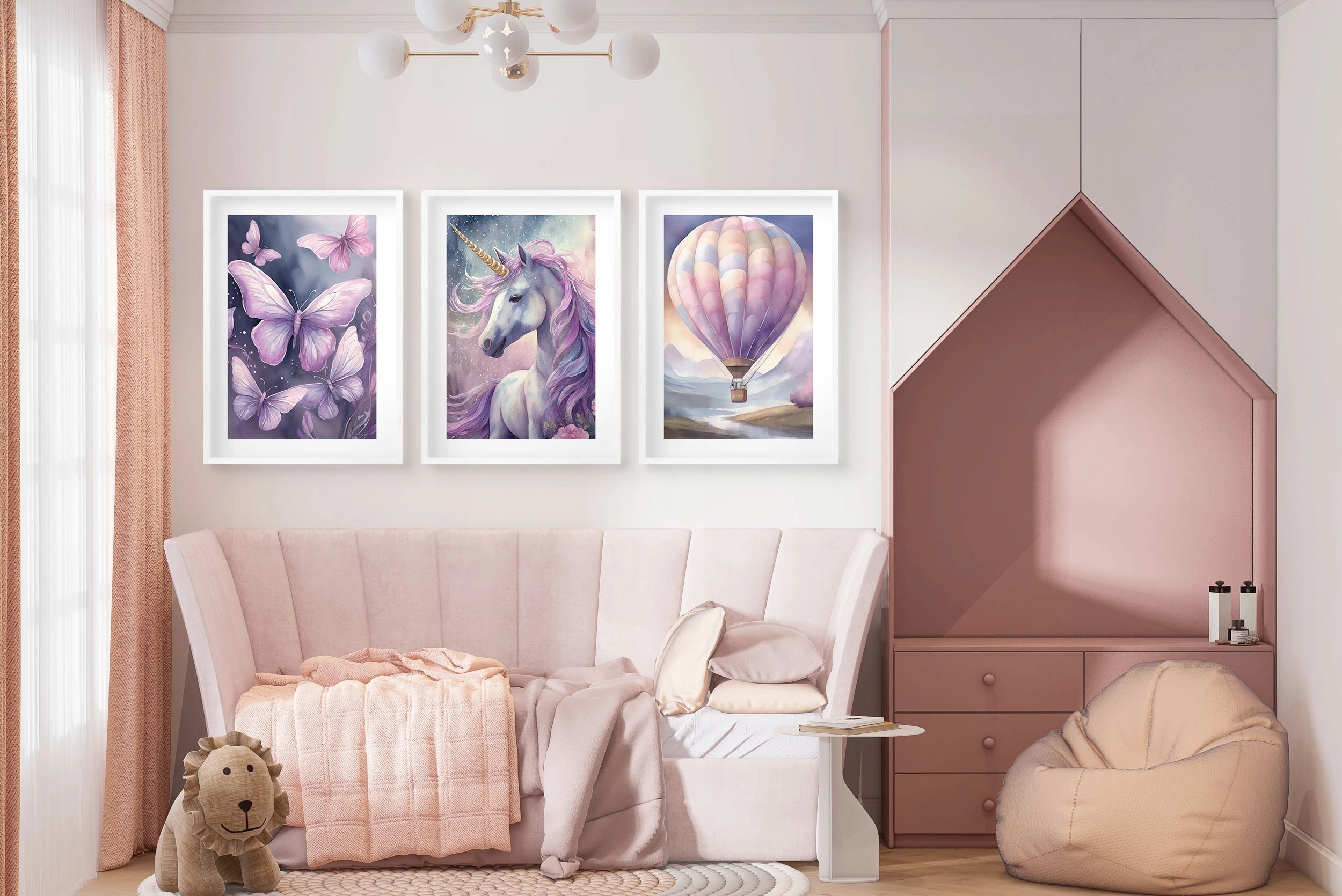 Постери в дитячу кімнату: Єдиноріг, Повітряна Куля, Метелики, 3х 30х40