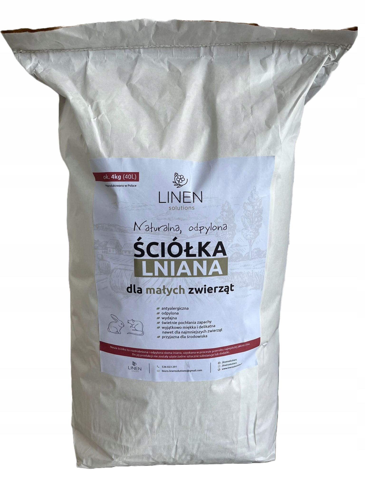 Постільна білизна Linen Solutions — унікальний продукт, створений з думкою про здоров’я та комфорт вашого улюбленця. Це ідеальне рішення для власників тварин, які цінують якість і чистоту, оскільки це подрібнена та знепилена солома льону, без штучних добавок, отримана в процесі переробки високоякісного льону. Льон набагато краще вбирає рідину, ніж інші типи субстрату, що призводить до меншого зношування та чистоти в клітці. Верхній шар підстилки утворює суху поверхню, а вода та сеча збираються під ним. Завдяки біохімічним процесам білизна зв'язує частинки аміаку, що містяться в сечі, поглинаючи неприємні запахи. Крім того, це гіпоалергенна рослина (не викликає алергічних реакцій) з нейтральним PH, що дозволяє використовувати гній як добриво. Завдяки ретельному видаленню пилу не подразнює дихальні шляхи. Безсумнівно, це найкраща безпилова підстилка на ринку.