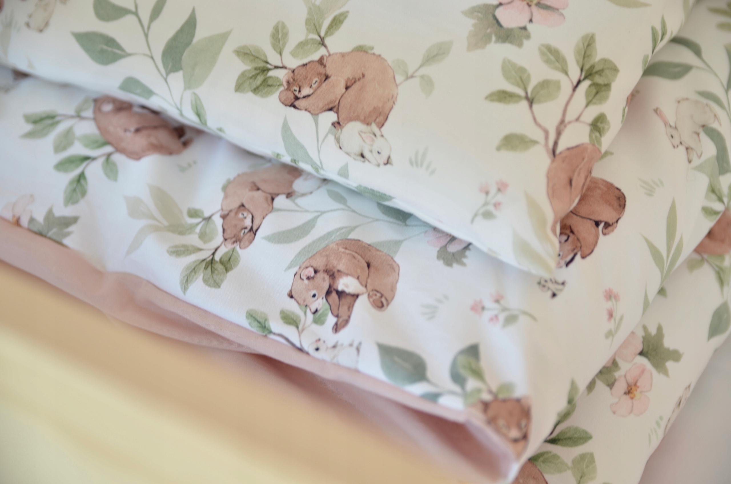 ПОСТІЛЬНА БІЛИЗНА ДВОСТОРОННЯ З ВЕДМЕДИКАМИ ТА ВЕДМЕДИКАМИ.