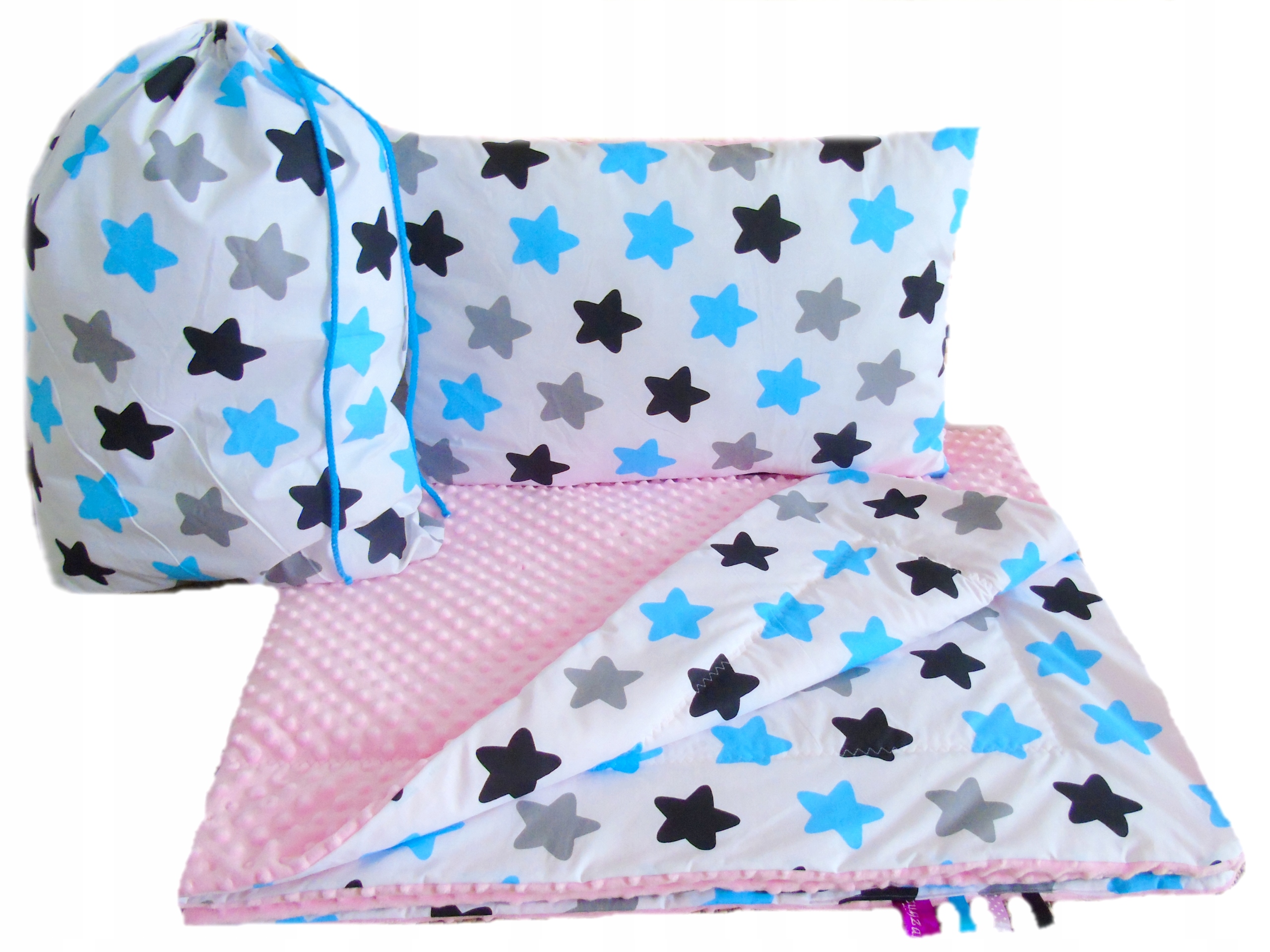 Набір виготовлений з м'якого та приємного флісу полярного, натиснутого на бульбашки, а також найвищої якості екологічної польської бавовни з усіма сертифікатами якості та безпеки. У модних кольорах та дизайнах, спеціально розроблених та вироблених для дітей. Дуже ніжний, затишний, теплий і приємний на дотик.