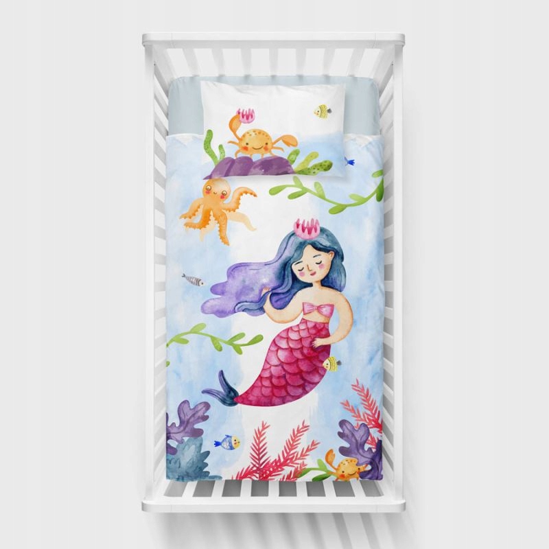 Постільна білизна для дівчинки - SYRENKA MARIELKA - 135x100 пошита в ПОЛЬЩІ з сертифікованих матеріалів, безпечних для вас і вашої дитини у швейній кімнаті, яку оцінили батьки - "SzwalniaSnow". Ми спеціалізуємося на пошитті дитячої постільної білизни та дитячих аксесуарів. Ми багато років прислухаємося до вашої думки та накопичуємо цінний досвід. Під час виробництва ми приділяємо особливу увагу потребам найменших та якості виконання.