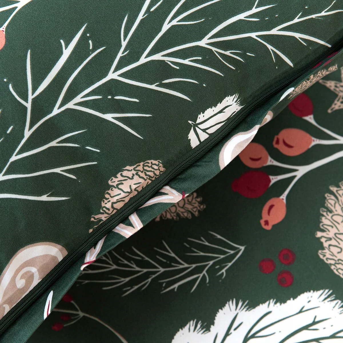 Комплект постільної білизни ТАМО складається з покривала розміром 160х200 см і двох наволочок розміром 70х80 см. Темно-зелений колір постільної білизни – один із основних новорічних кольорів. На цю тканину клали різні ялинкові прикраси.