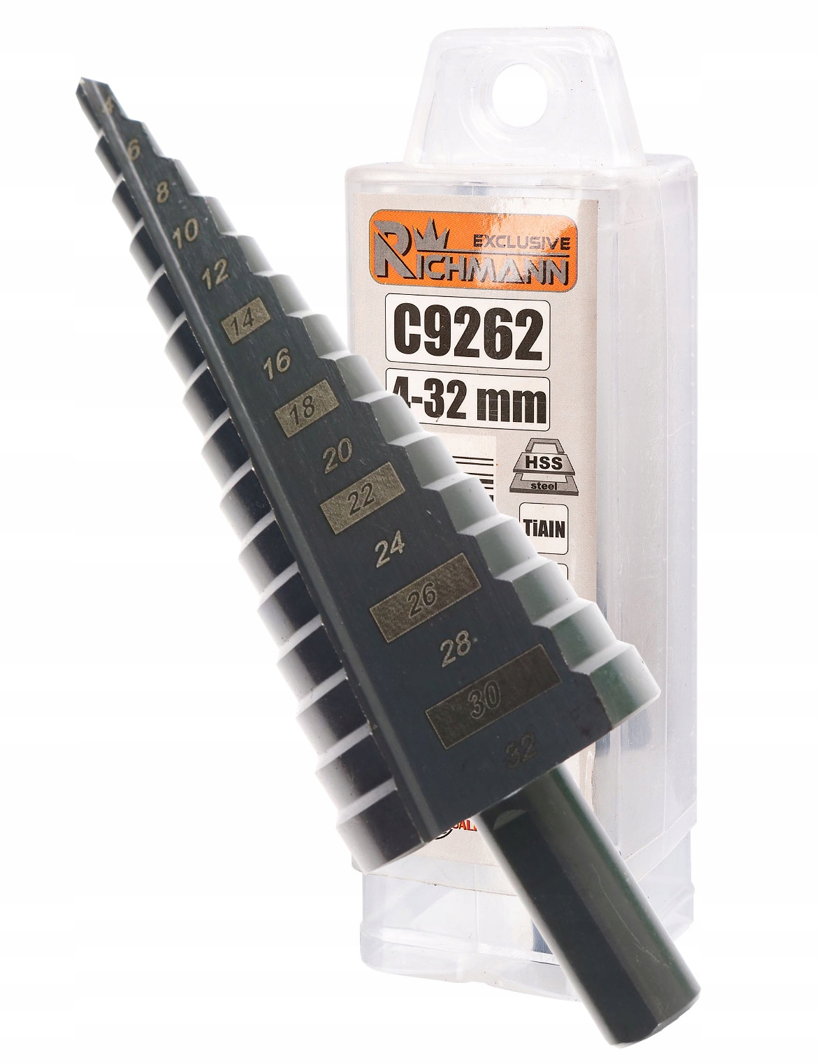 Поступове конічне свердло для свердління отворів у сталі, розміром 4-32 мм.