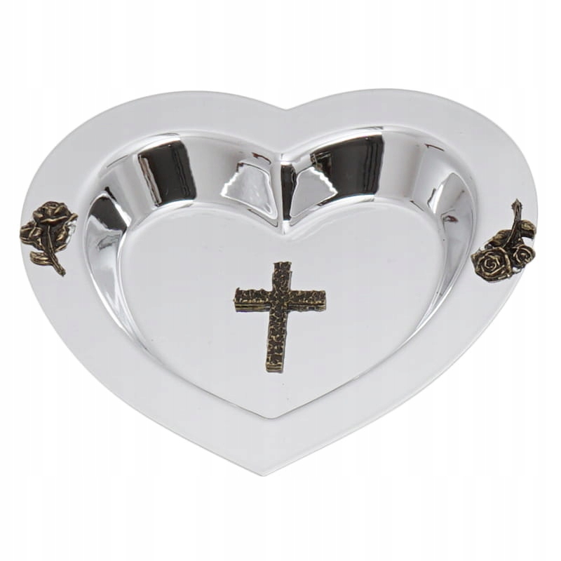 Посудина для свяченої води у формі серця, срібна, пластикова, діаметр бл.12 см.