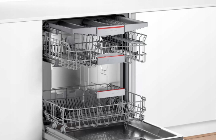 - VarioFlex система кошиків із ящиком для столових приборів Vario3: розширені можливості адаптації внутрішньої частини посудомийної машини до всіх трьох рівнів завантаження.