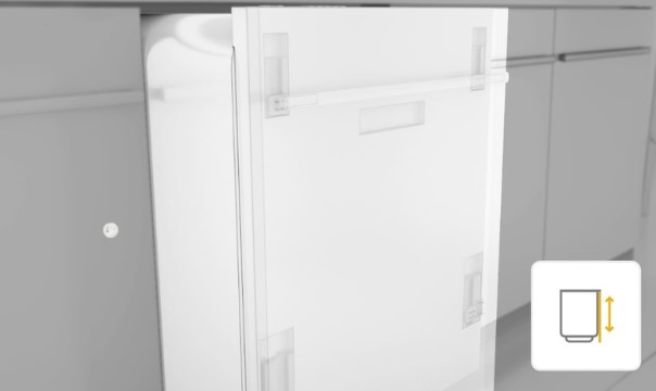 Нові посудомийні машини розроблено таким чином, щоб ідеально відповідати будь-якій висоті меблів на вашій кухні, що відповідає всім вашим потребам. Завдяки новій розсувній петлі встановлення посудомийної машини та фасадів дуже просте та забезпечує велику гнучкість у регулюванні висоти. Декоративна панель може досягати 80 см у висоту і 2 см в товщину.
