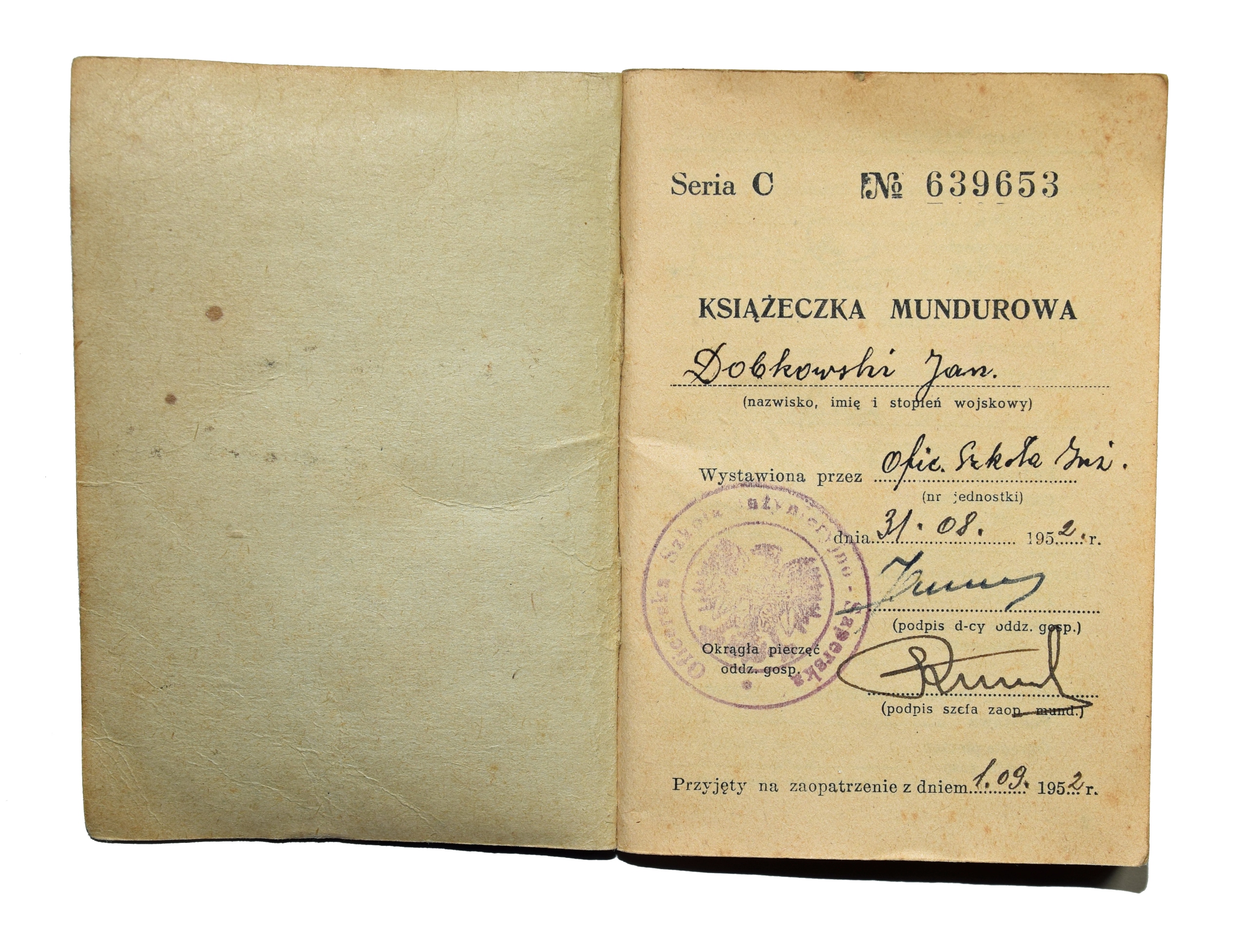 Посвідчення Книжечка про форму Саперний центр 1952 Офіцерська школа LWP