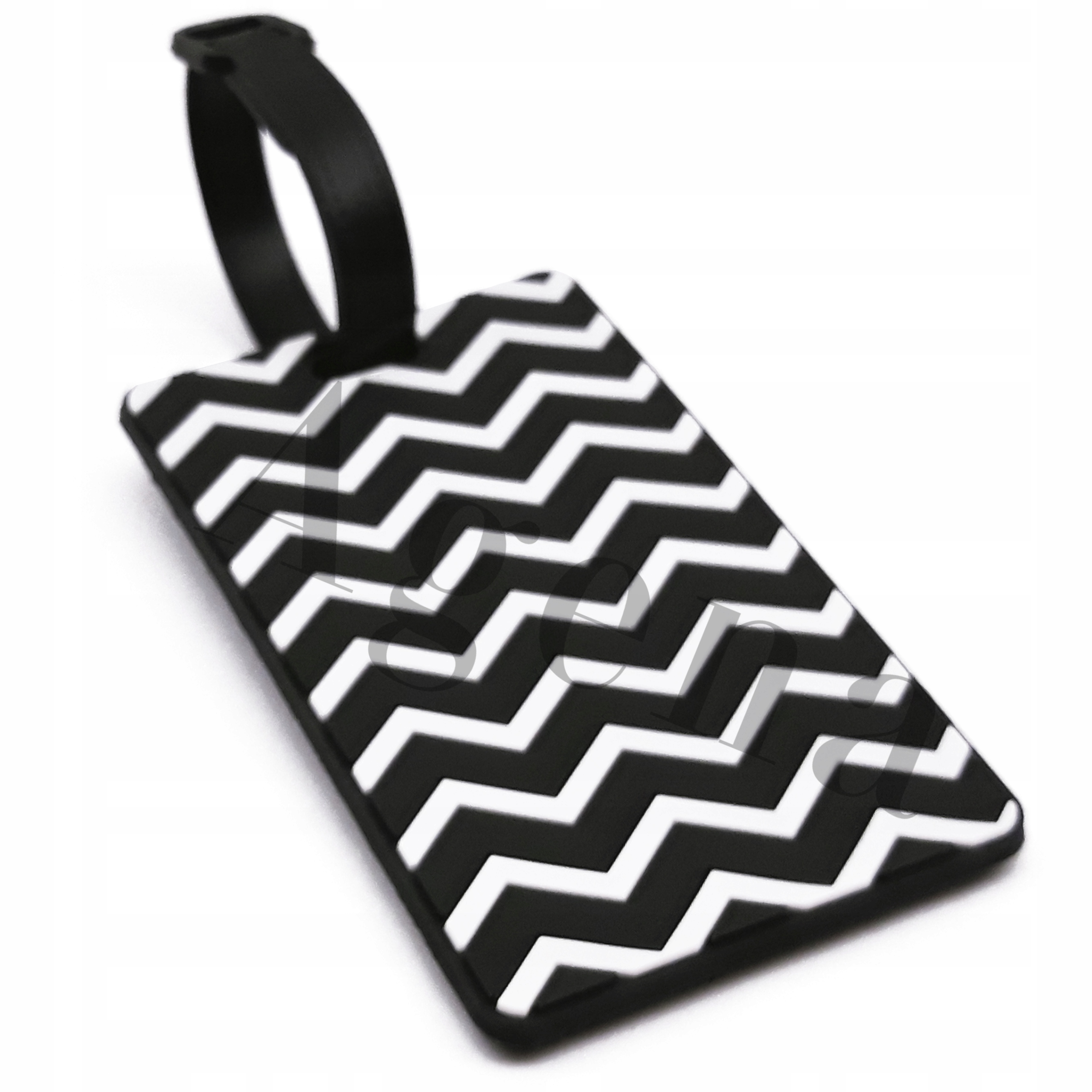 Предметом пропозиції є чорно-білий гумовий бейдж-бірка для багажу(1 шт.) із зигзагоподібним малюнком. Це ідеальний спосіб позначити ваш багаж під час подорожі.