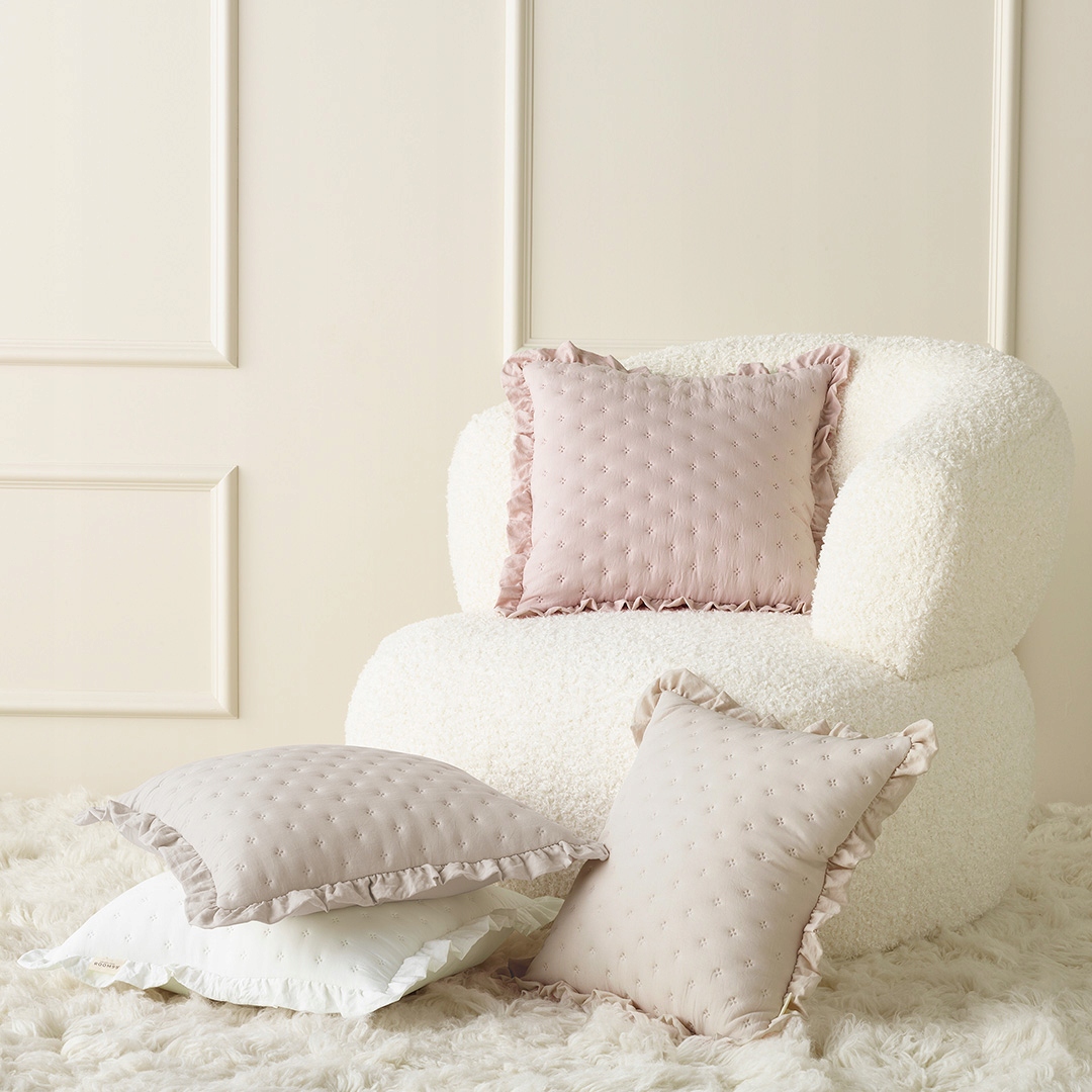 Декоративна наволочка Molly порадує вас тонким стьобанням і чарівним воланом, що прикрашає її боки. Molly - це легка, тепла колекція, яка поєднує в собі цілий набір ретельно продуманих деталей.