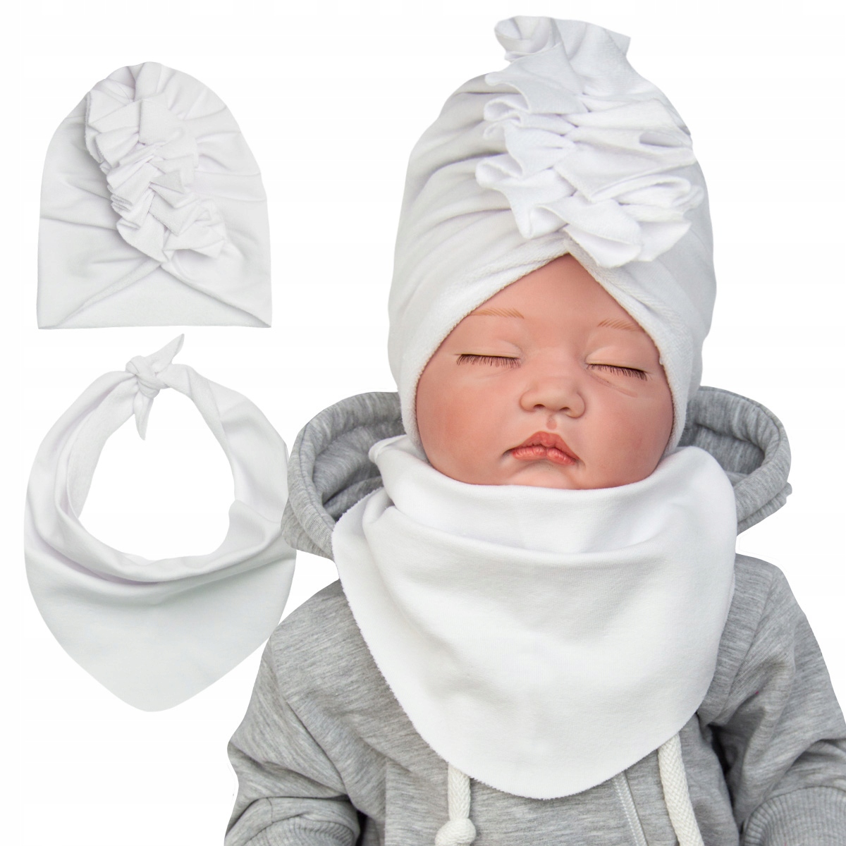 Практичний і необхідний у гардеробному наборі маленької дівчинки, виготовленого з еластичної тканини поту - білий тюрбан та шарф . 4 4