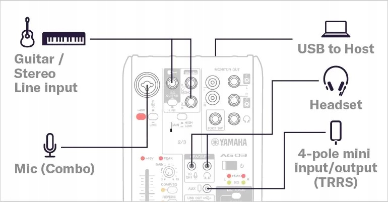 ОПИС МІКШЕРА YAMAHA AG03 BK (чорний)