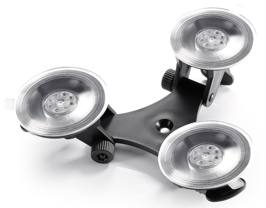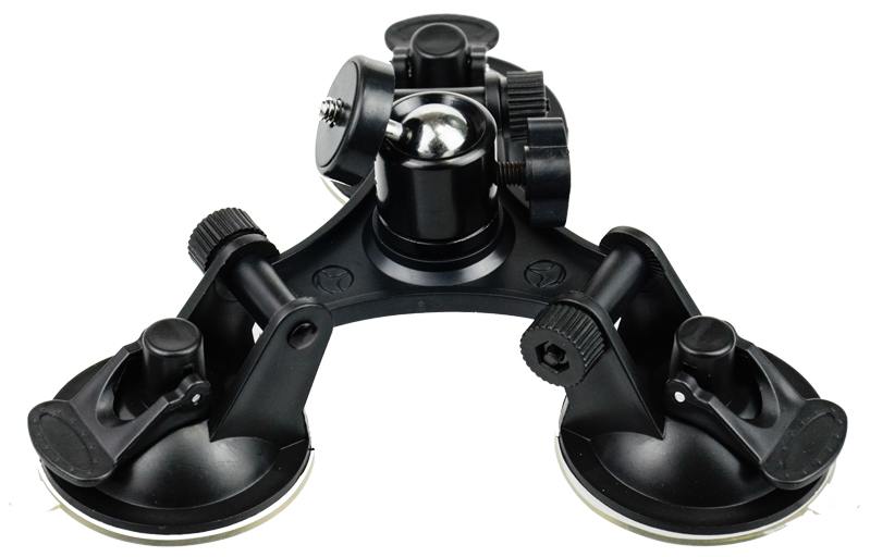 Універсальний автомобільний тримач, який кріпиться на 3 присосках до скла або іншої гладкої поверхні. Завдяки цьому ви зможете легко записувати своє водіння та оточення, не тримаючи камеру в руках.