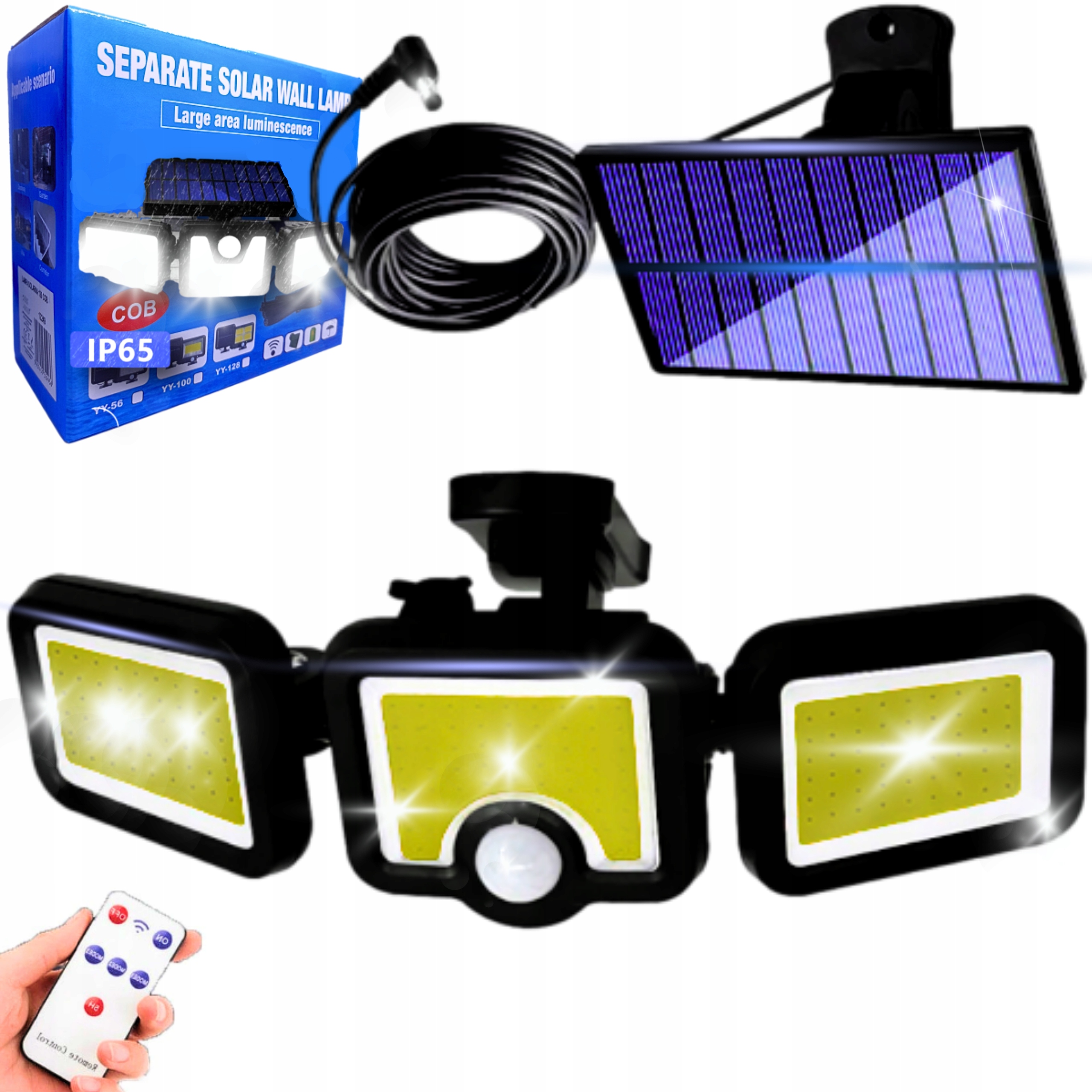 ПОТРІЙНА СВІТЛОДІОДНА СОНЯЧНА ЛАМПА ДАТЧИК РУХУ IP65 171 COB LEDs ІЧ-пульт дистанційного керування