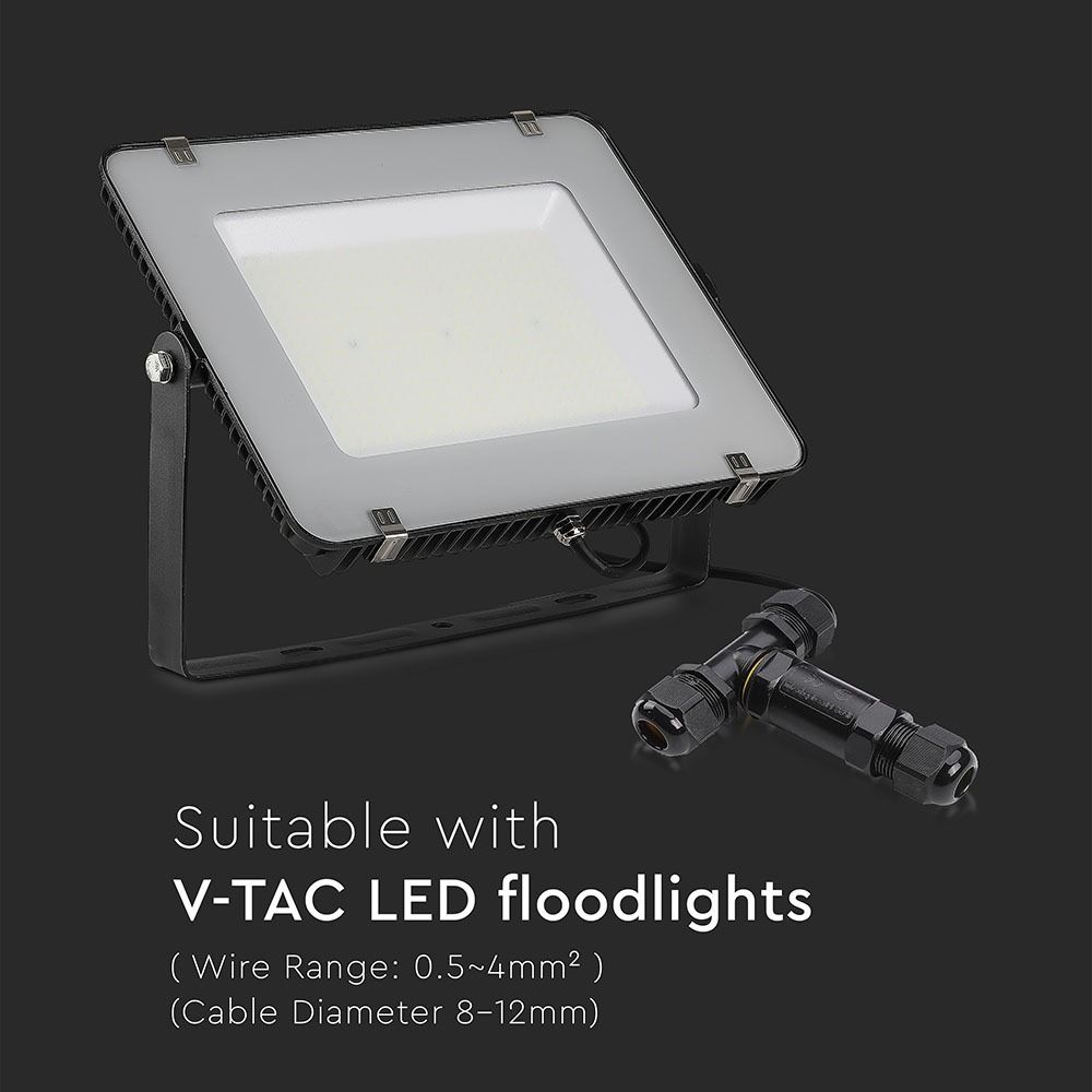 Герметичне кабельне з'єднання VT-869 від V-TAC® полегшує установку зовнішніх світлодіодних ламп і щільне з'єднання трьох кабелів заземлення. Гвинтові елементи з ущільненнями, затиск на кабелі - Клас герметичності IP68. Діаметр кабелю від 8 до 12 мм, максимальний переріз проводів 3х2,5 мм. Чорний корпусз поліпропілену.