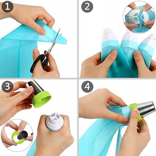 - Підготуйте пакети з кремом, обрізавши їхні кінці так, щоб кінчик адаптера стирчав після вставлення.