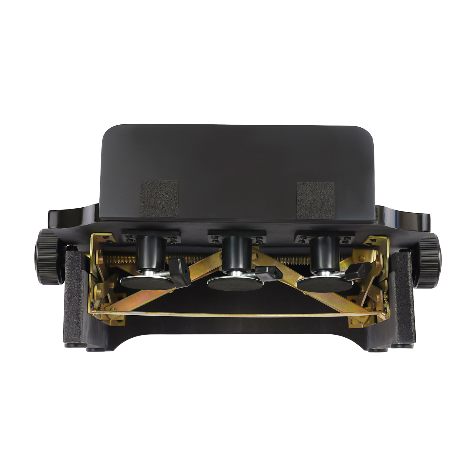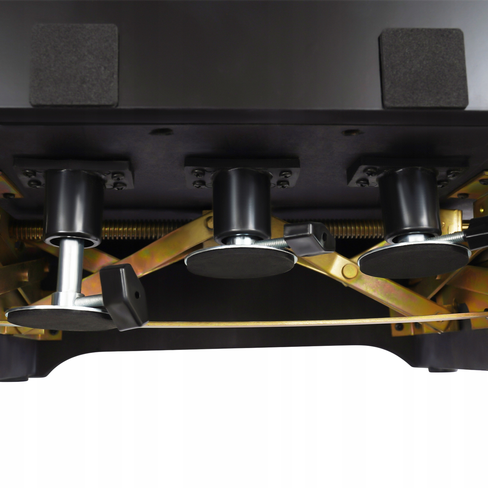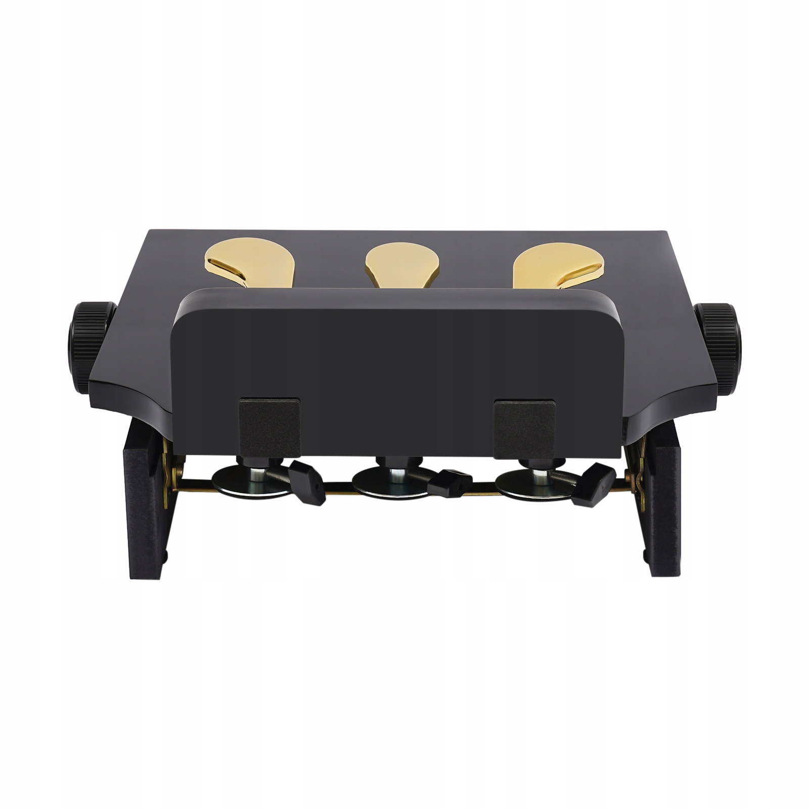 Крок 1: Покладіть допоміжну педаль обережно перед фортепіано, а гумовий майданчик на задній частині допоміжної педалі обережно оберніть ручку фортепіано. Кутовий », щоб відрегулювати довжину трьох гілок допоміжної педалі, торкніться педалі фортепіано, щоб вирівнятись, і нарешті затягніть чотири кутові гайки.