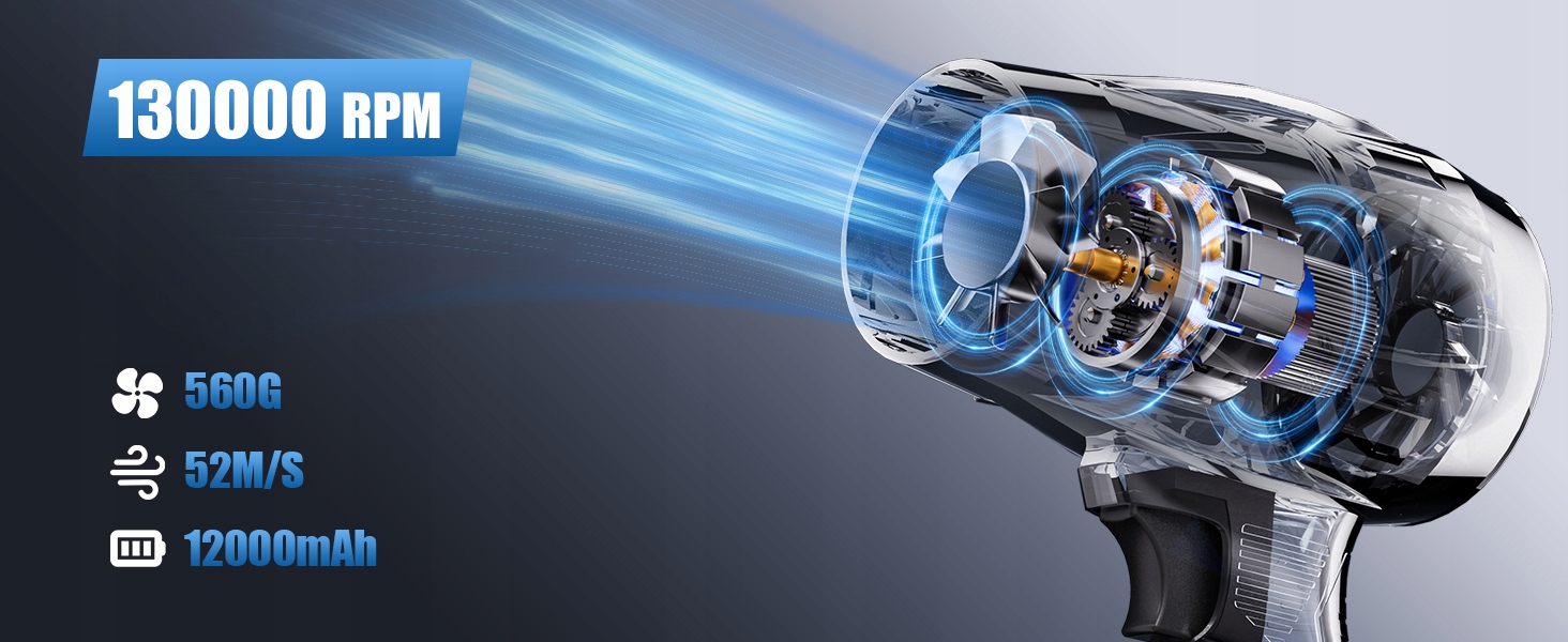 - Ця невелика акумуляторна повітродувка для листя — це вражаюча ручна електрична повітродувка зі швидкістю 130 000 обертів на хвилину, яка легко очищає клавіатури комп’ютерів, зовнішні поверхні та автомобілі.