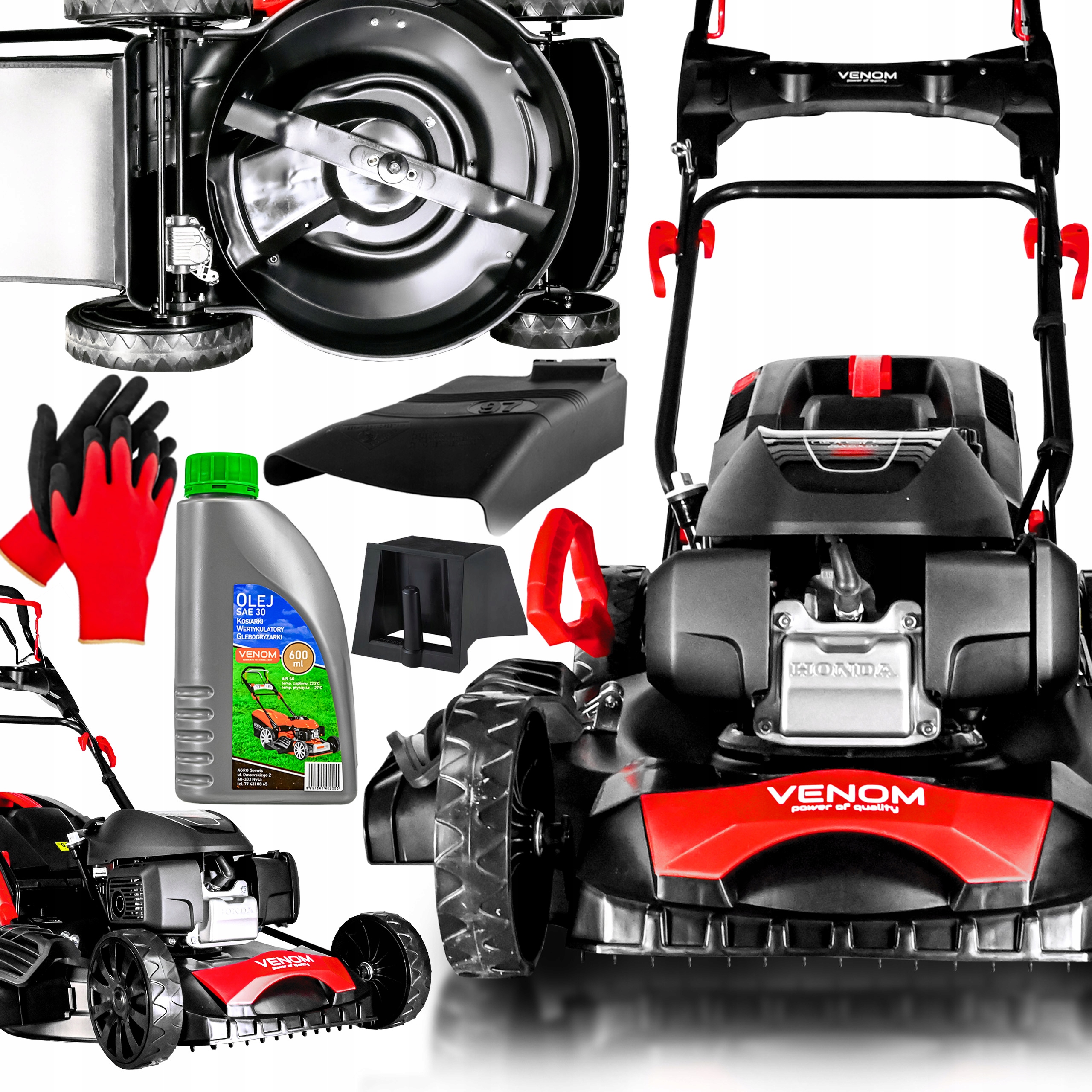 Бензинова газонокосарка VENOM з двигуном HONDA проста у використанні та ефективна. З його допомогою скошування великих поверхонь не складе великої проблеми! Роторна робота забезпечує точність, а отже - високу естетичність, а також правильний догляд за газоном.