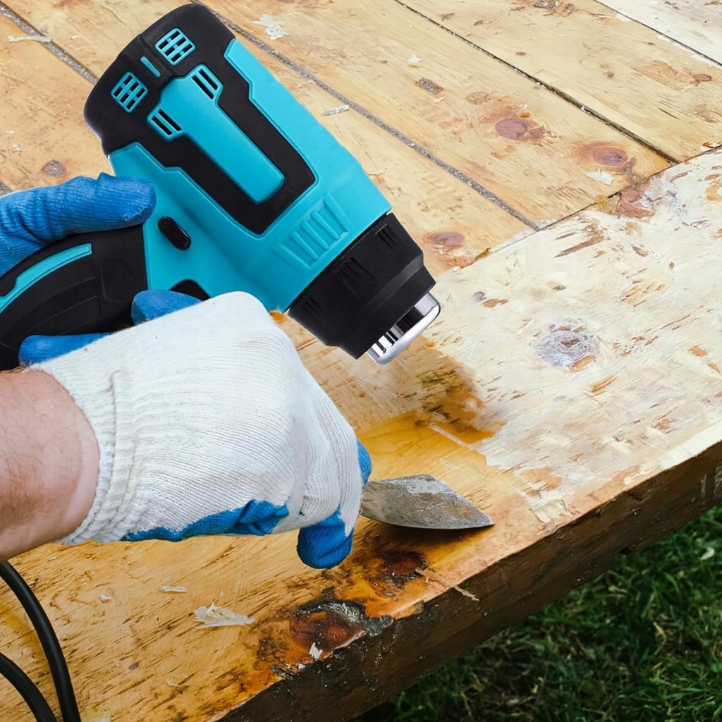 ТЕПЛОВА ЕЛЕКТРИЧНА ДЛЯ АКУМУЛЯТОРА MAKITA ПОТУЖНА 400°C + 2 НАСАДКИ + ШПАТЕЛЬ + 2 АКУМУЛЯТОРА
