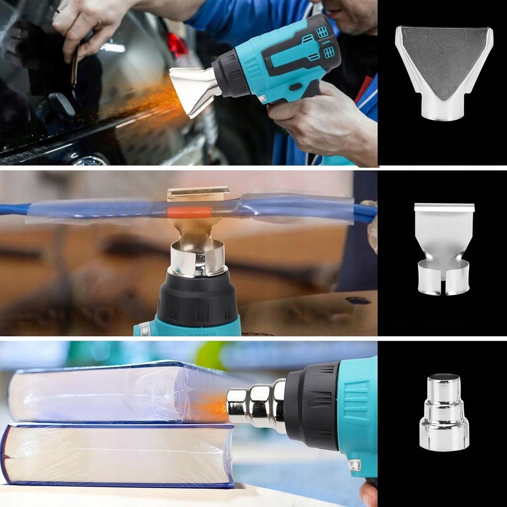 - Три різні типи насадок можуть контролювати потік повітря та концентрувати тепло в певних областях, що значно покращує практичність вентиляторів. Ідеально підходить для зняття фарби, рукоділля, термоусадочної упаковки, епоксидної смоли, розморожування труб, ремонту електроніки, відкручування іржавих гвинтів, згинання пластику та багато іншого. Усі три легко встановити.