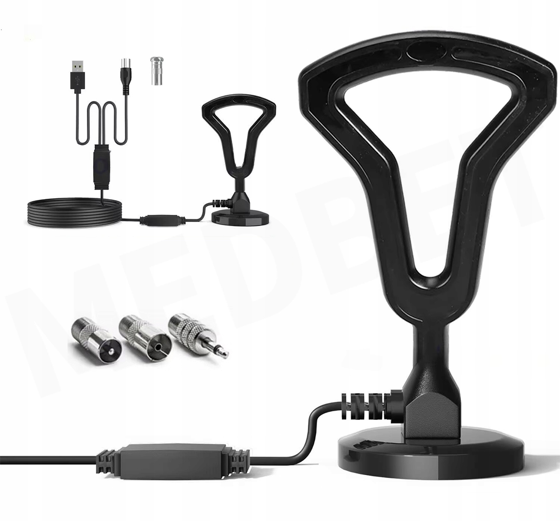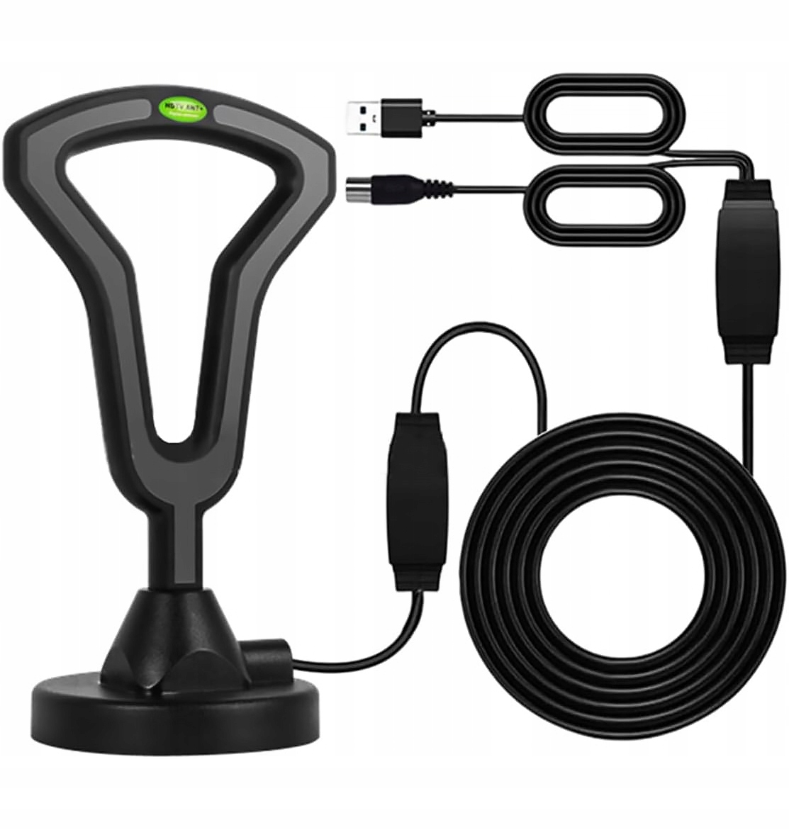 - Вбудований антенний підсилювач із живленням через порт USB (потрібен будь-який зарядний пристрій USB)